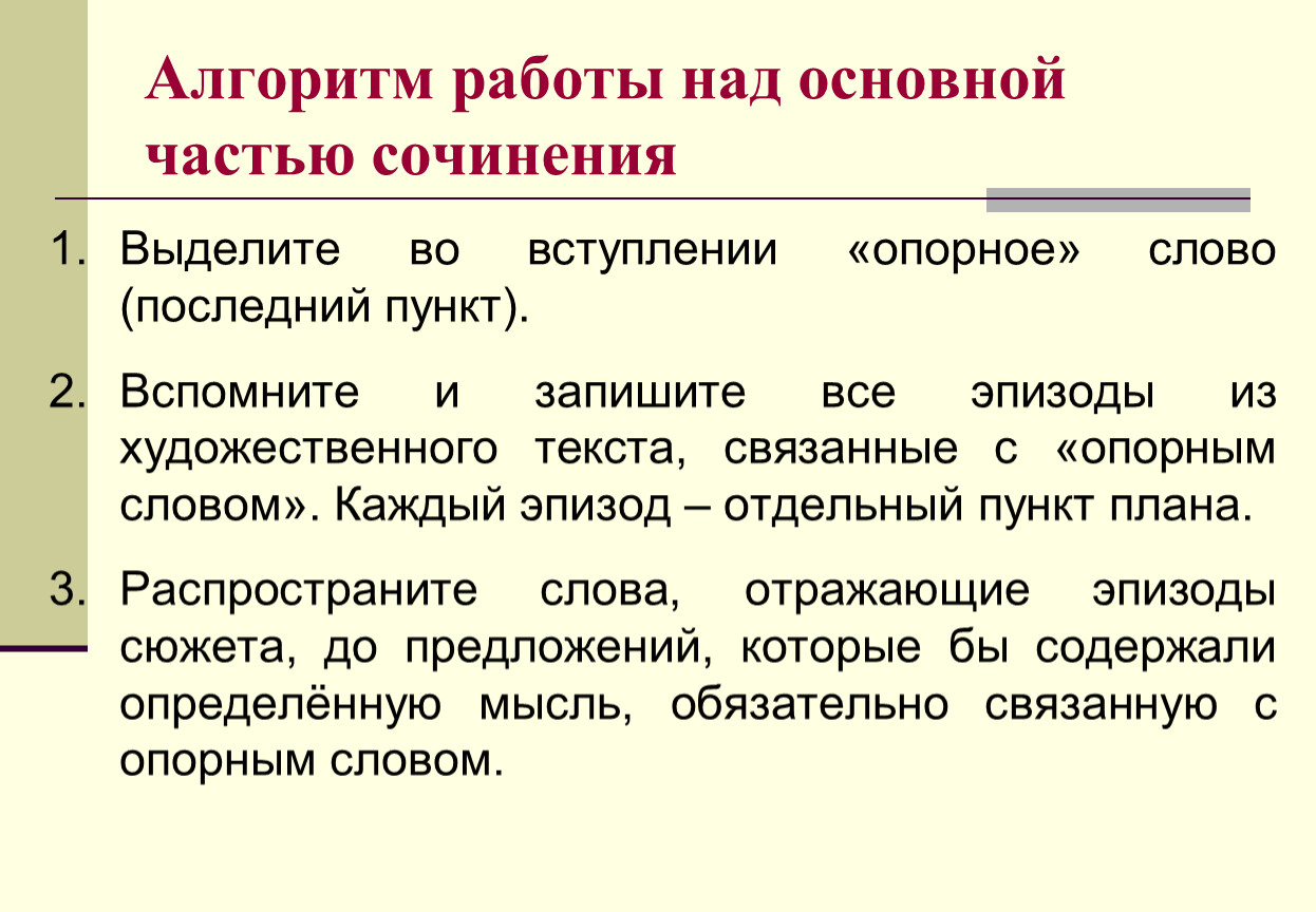 Алгоритм работы над основной частью сочинения