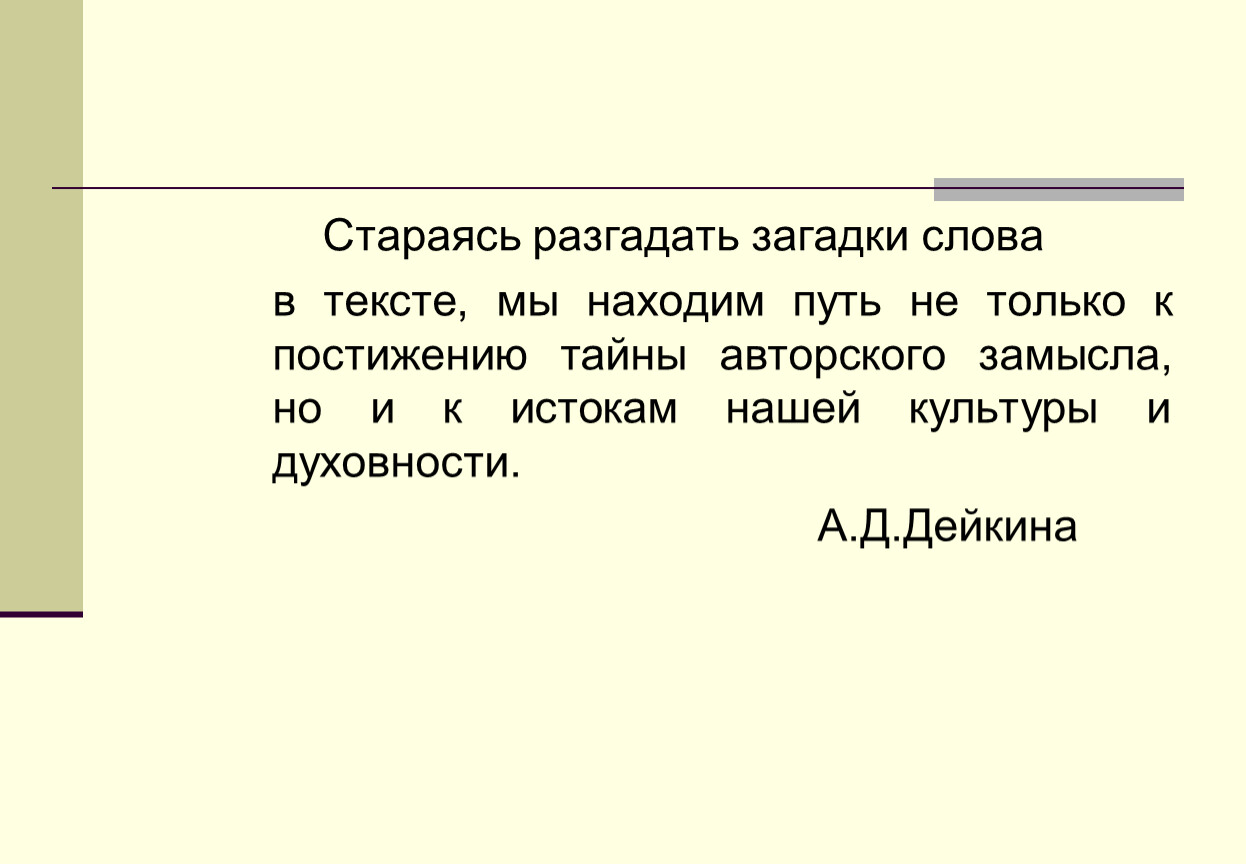 в тексте, мы находим путь не только к постижению тайны авторского замысла, но и к истокам нашей культуры и духовности.