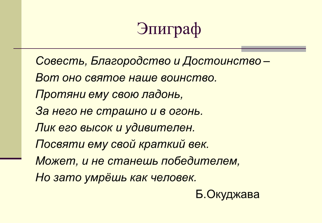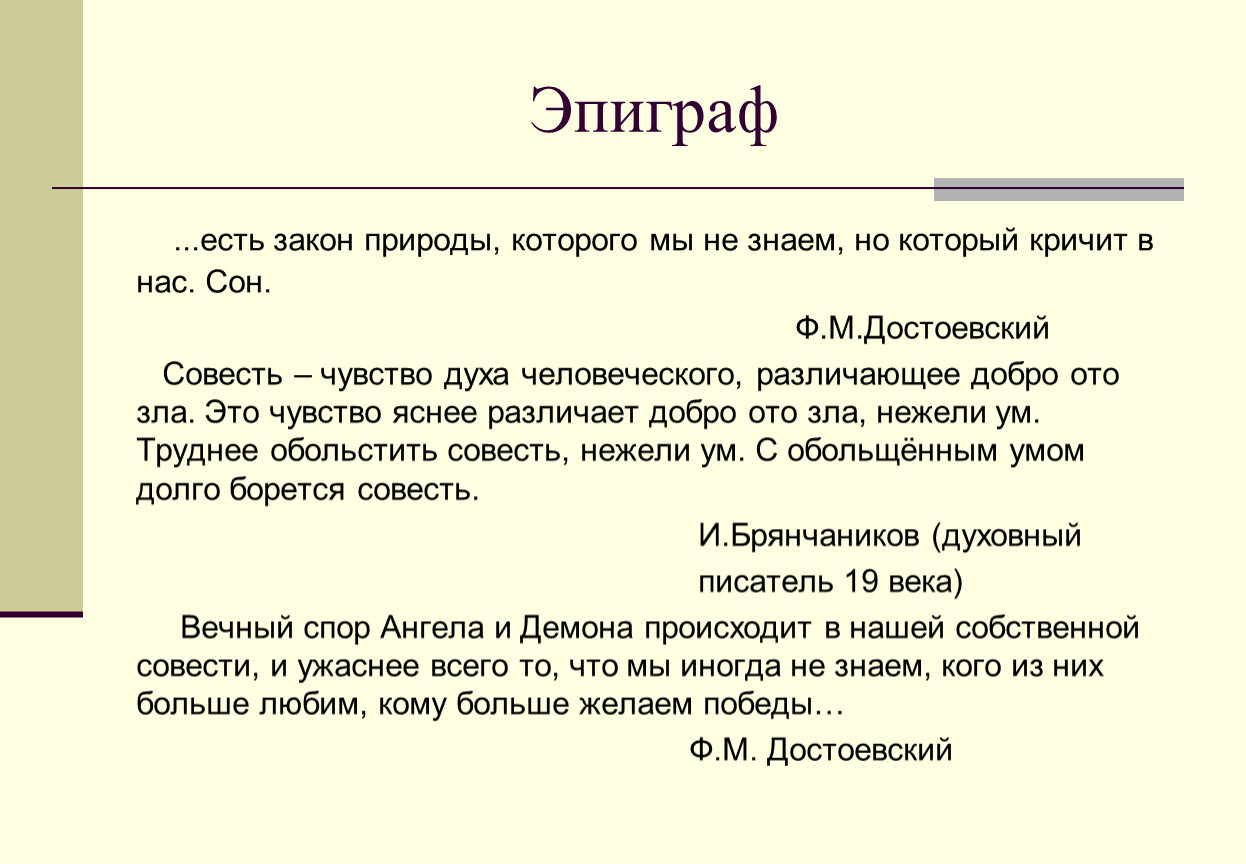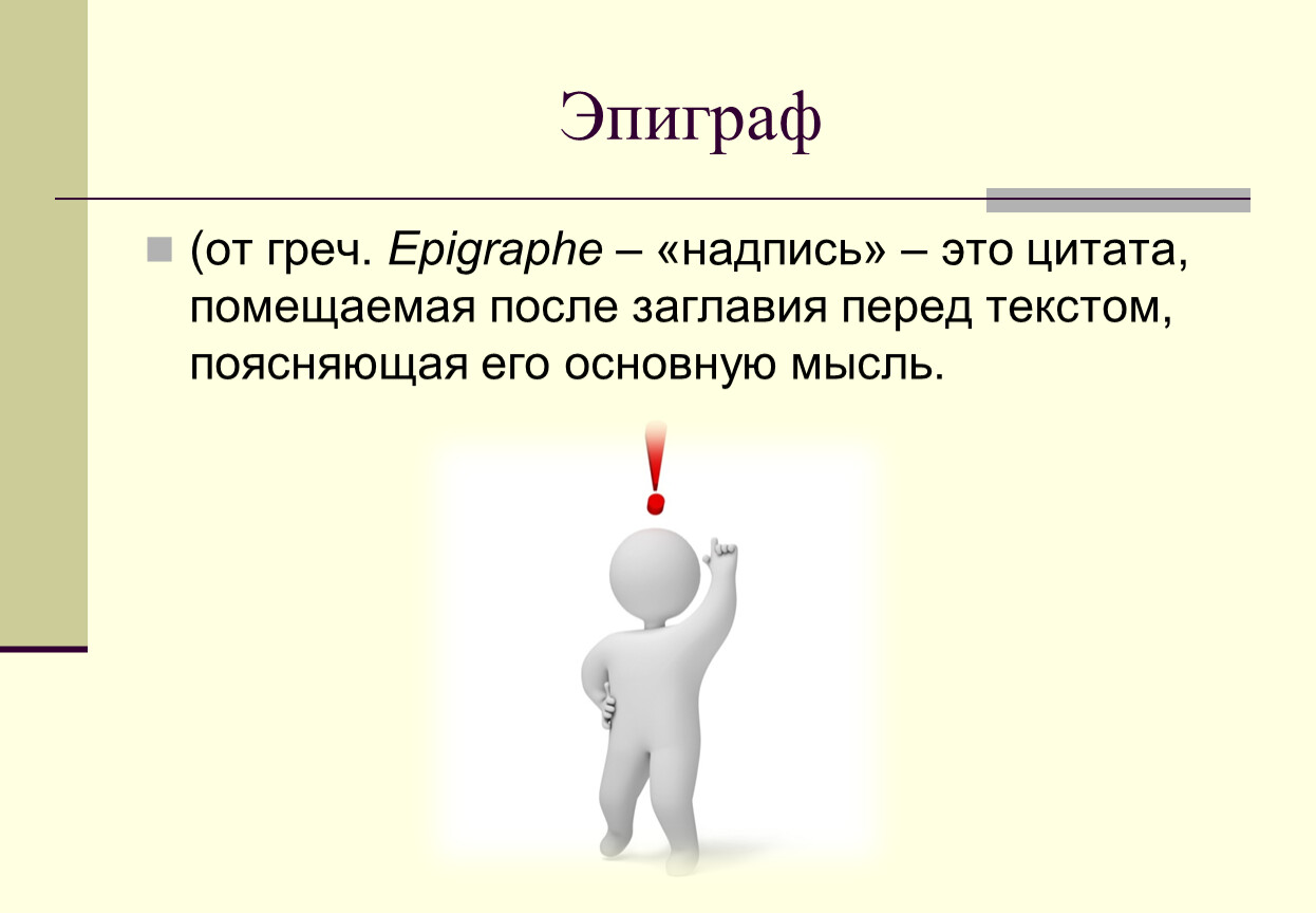(от греч. Epigraphe – «надпись» – это цитата, помещаемая после заглавия перед текстом, поясняющая его основную мысль.