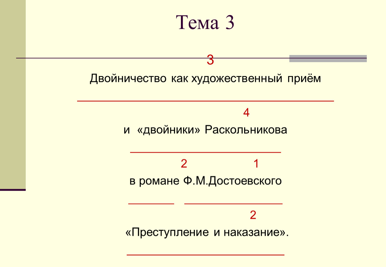 3.Двойничество как художественный приём и «двойники» Раскольникова в романе Ф.М.Достоевского «Преступление и наказание».