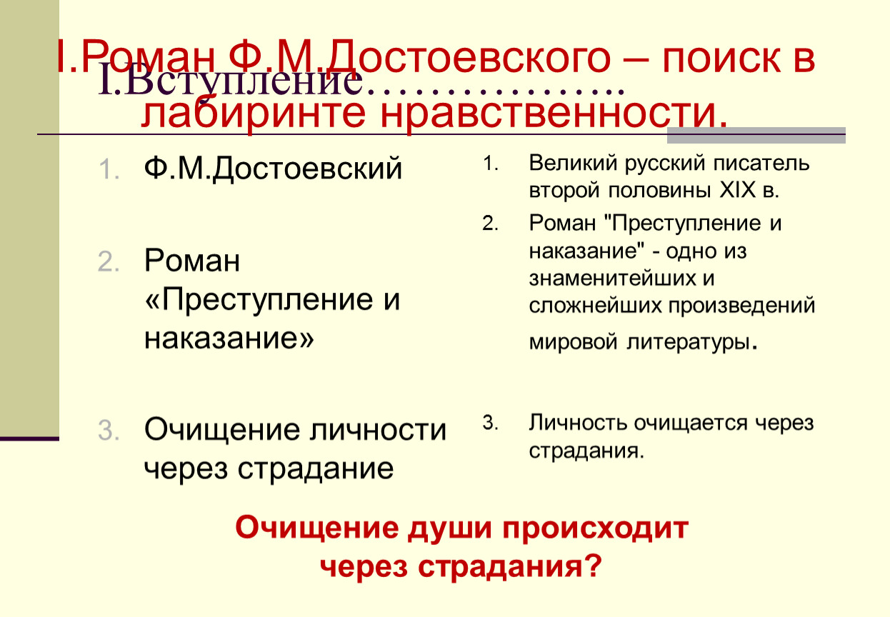 I.Роман Ф.М.Достоевского – поиск в лабиринте нравственности.