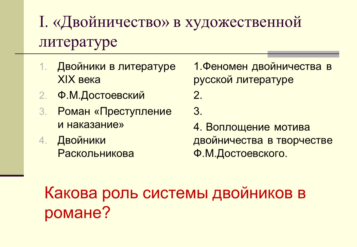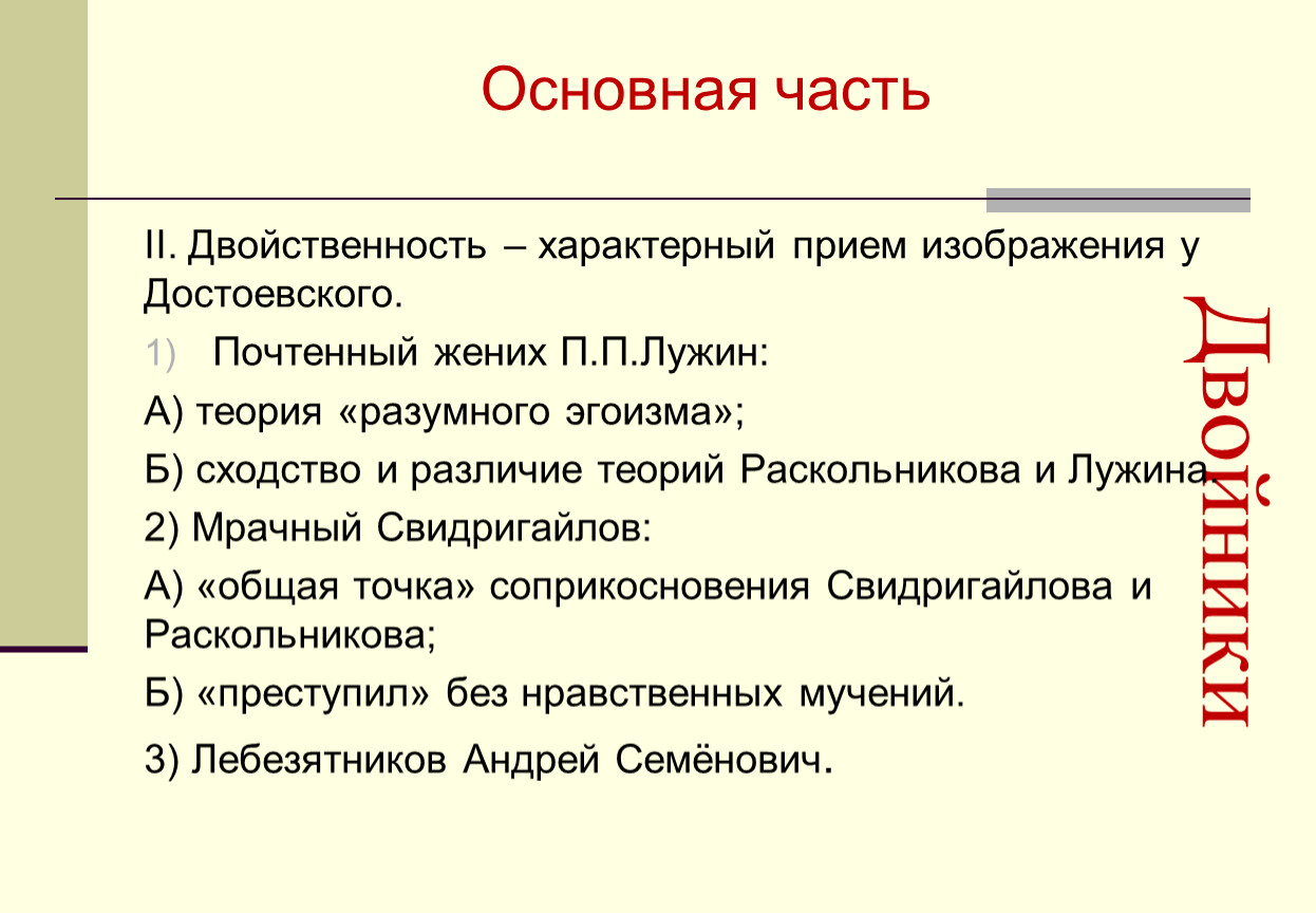 II. Двойственность – характерный прием изображения у Достоевского.