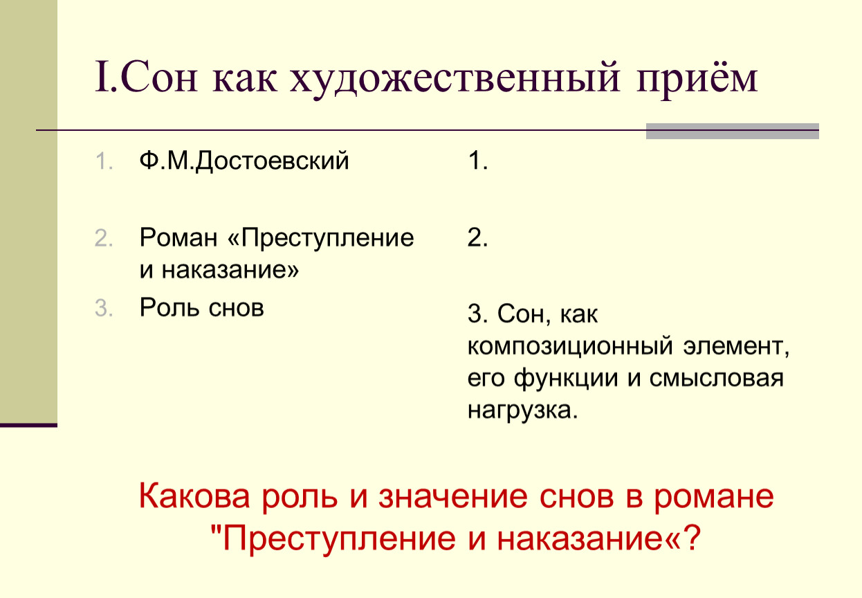 2.Композиционная и идейная роль снов в романе Ф.М.Достоевского «Преступление и наказание».