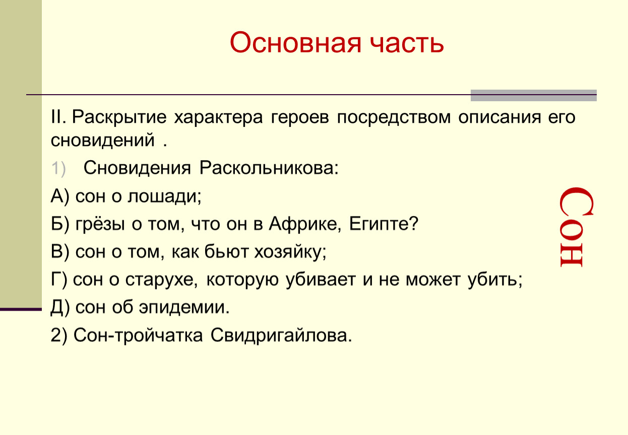 II. Раскрытие характера героев посредством описания его сновидений .