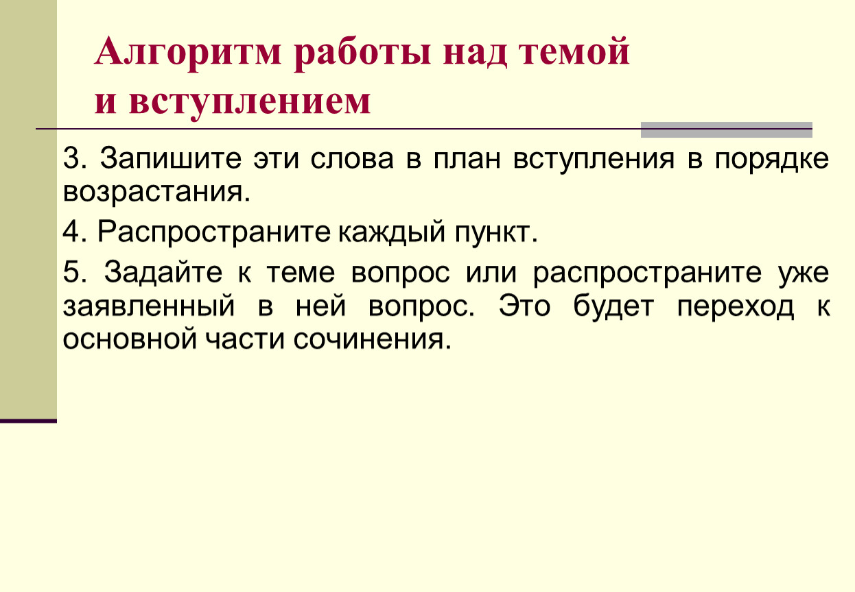 Алгоритм работы над темой и вступлением
