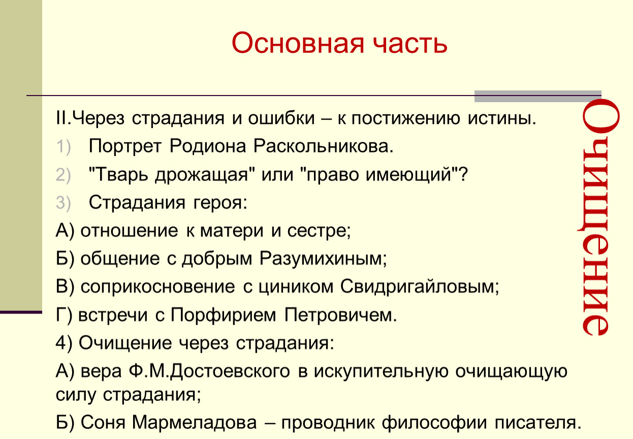 1.Очищение личности через страдание (по роману Ф.М.Достоевского «Преступление и наказание»).