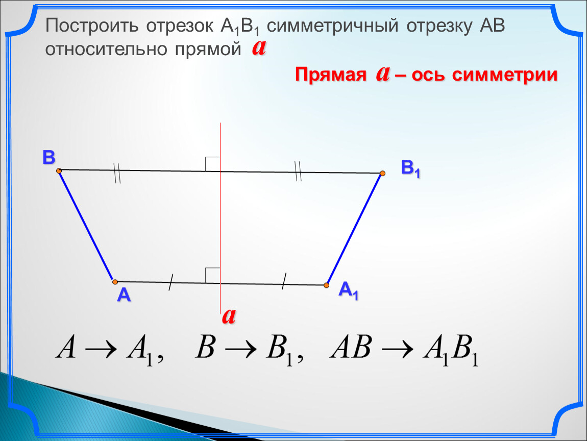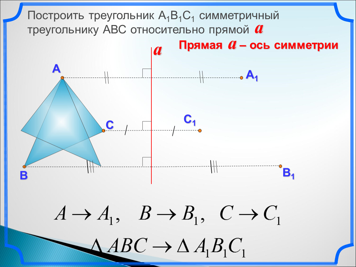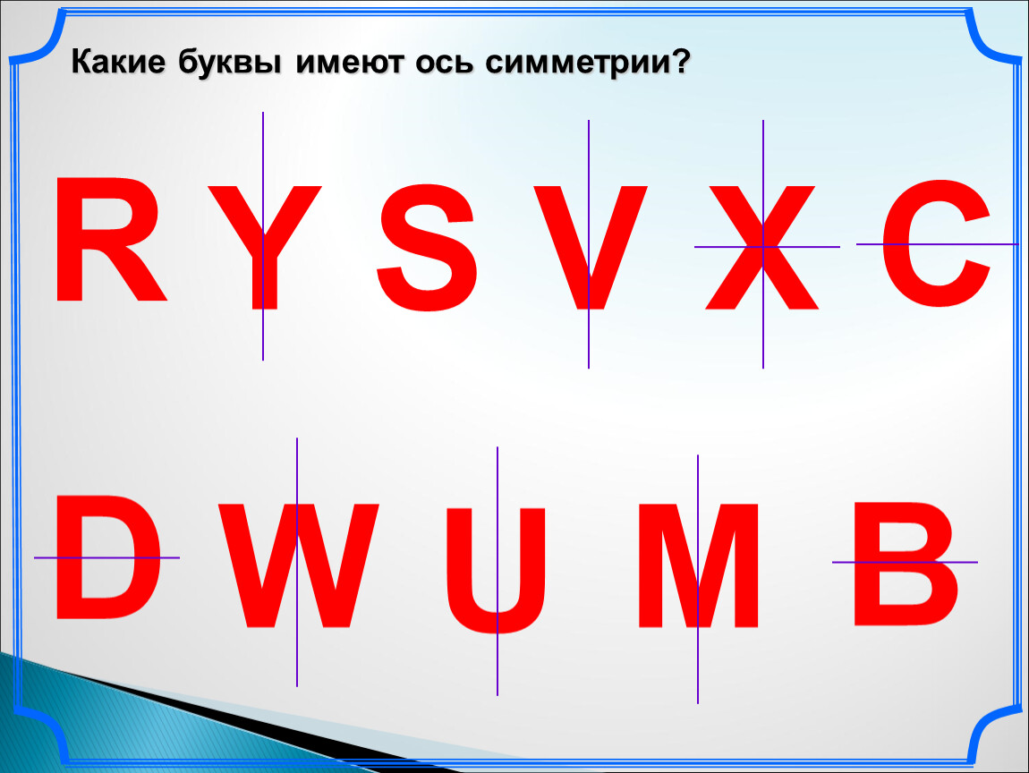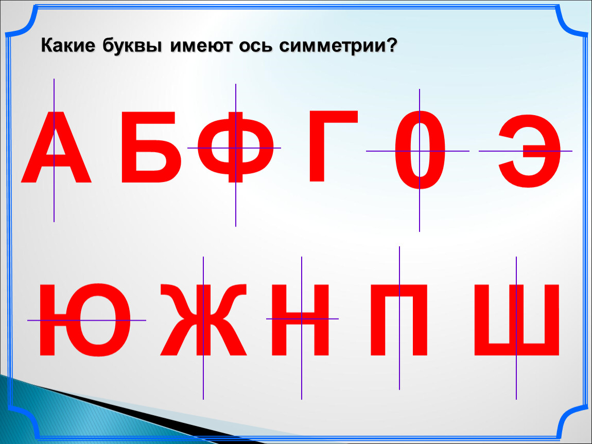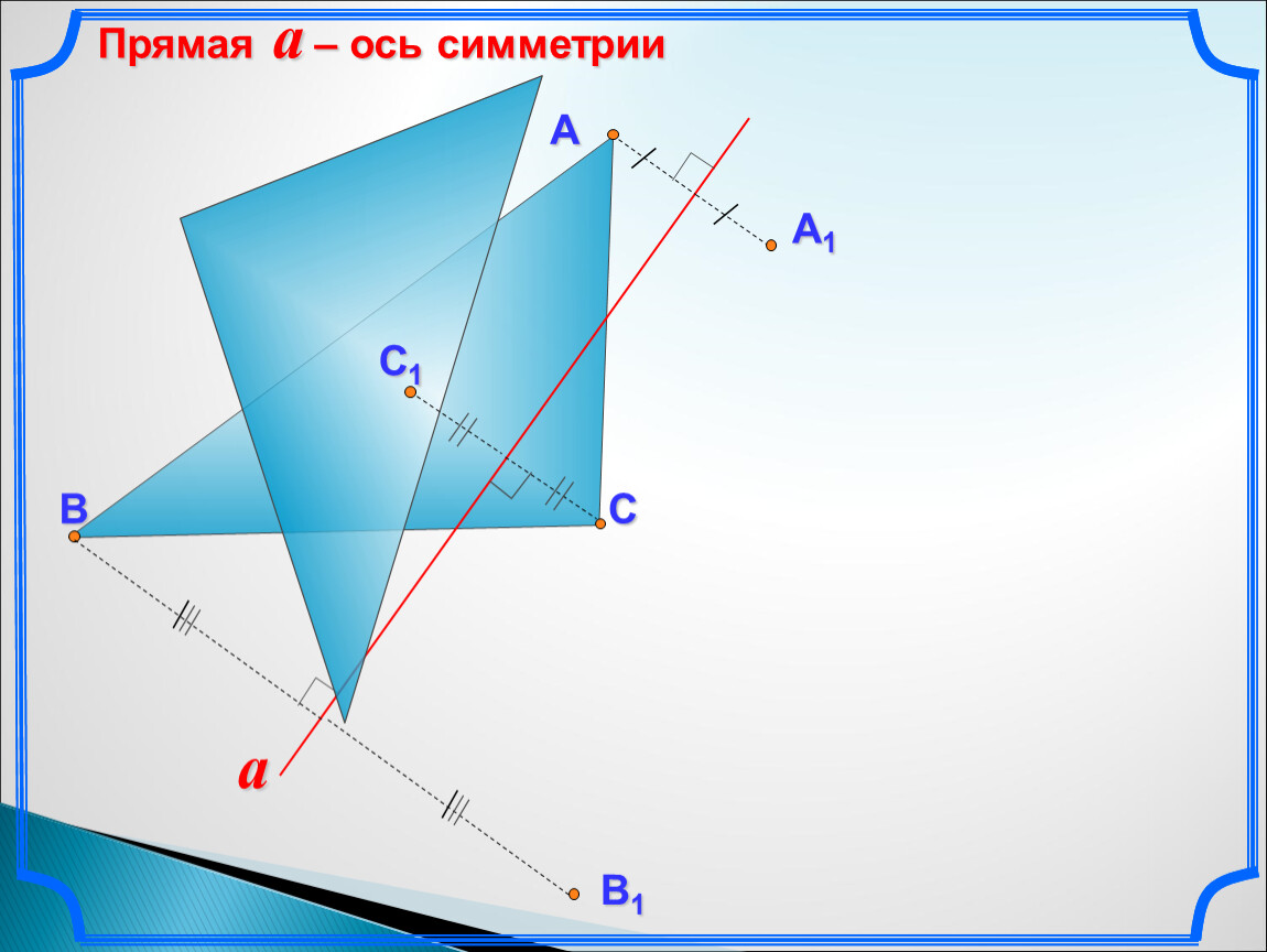 Если фигура имеет ось симметрии, то говорят, что она обладает осевой симметрией. Фигура может иметь одну или несколько осей симметрии.