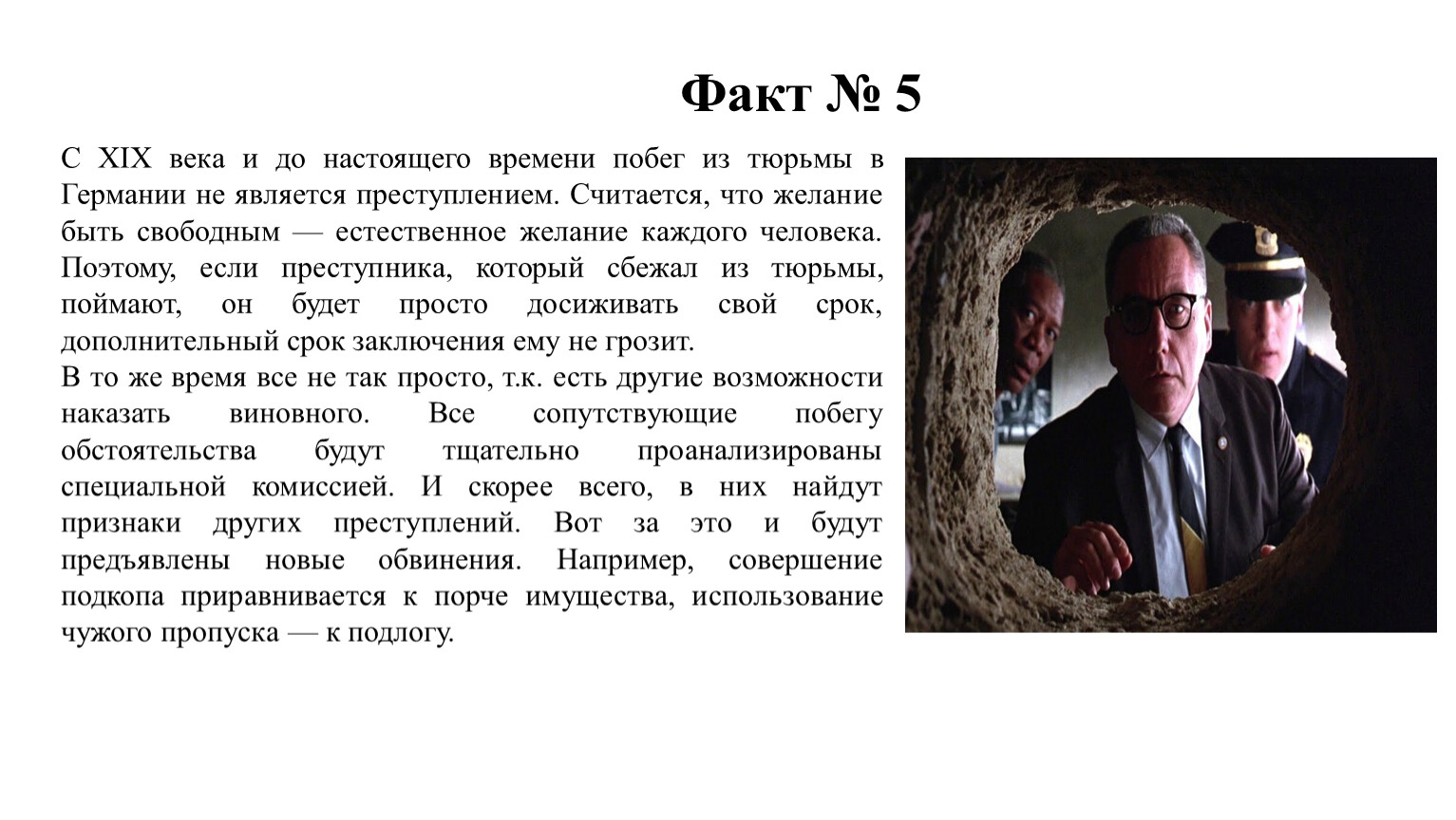 В то же время все не так просто, т.к. есть другие возможности наказать виновного. Все сопутствующие побегу обстоятельства будут тщательно проанализированы специальной комиссией. И скорее всего, в них найдут признаки других преступлений. Вот за это и будут предъявлены новые обвинения. Например, совершение подкопа приравнивается к порче имущества, использование чужого пропуска — к подлогу.