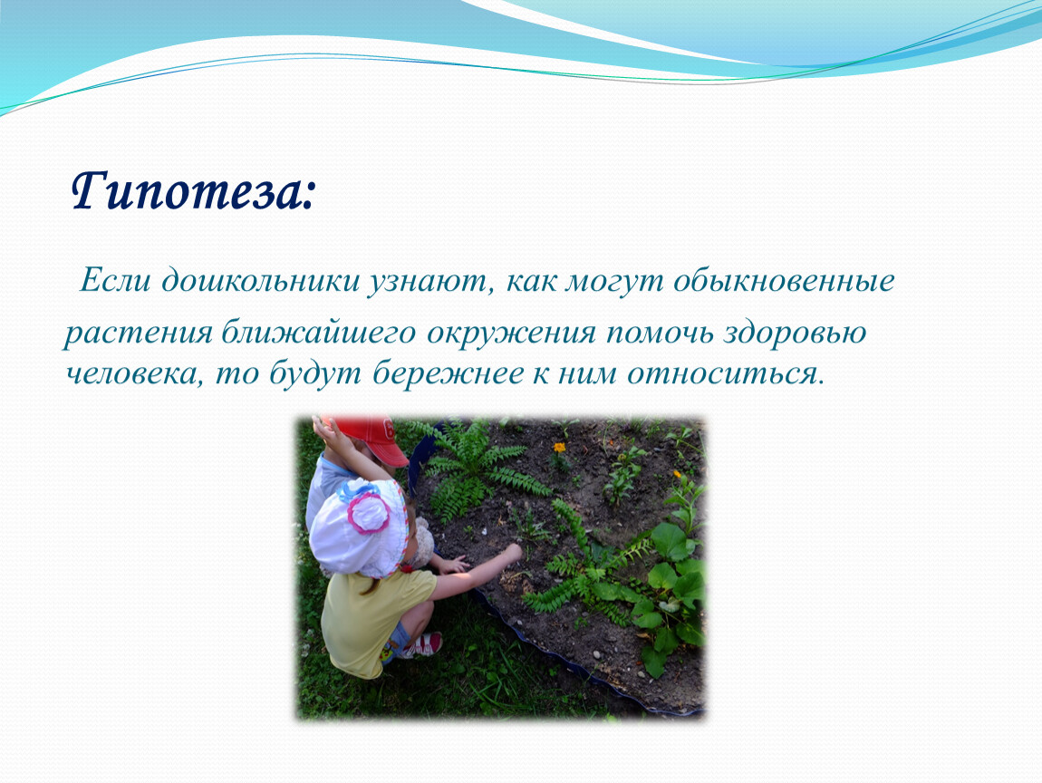 Гипотеза: Если дошкольники узнают, как могут обыкновенные растения ближайшего окружения помочь здоровью человека, то будут бережнее к ним относиться.