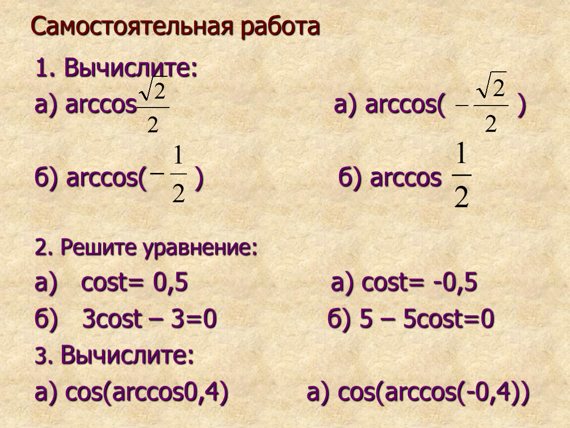 а) cos(arccos0,4) а) cos(arccos(-0,4))