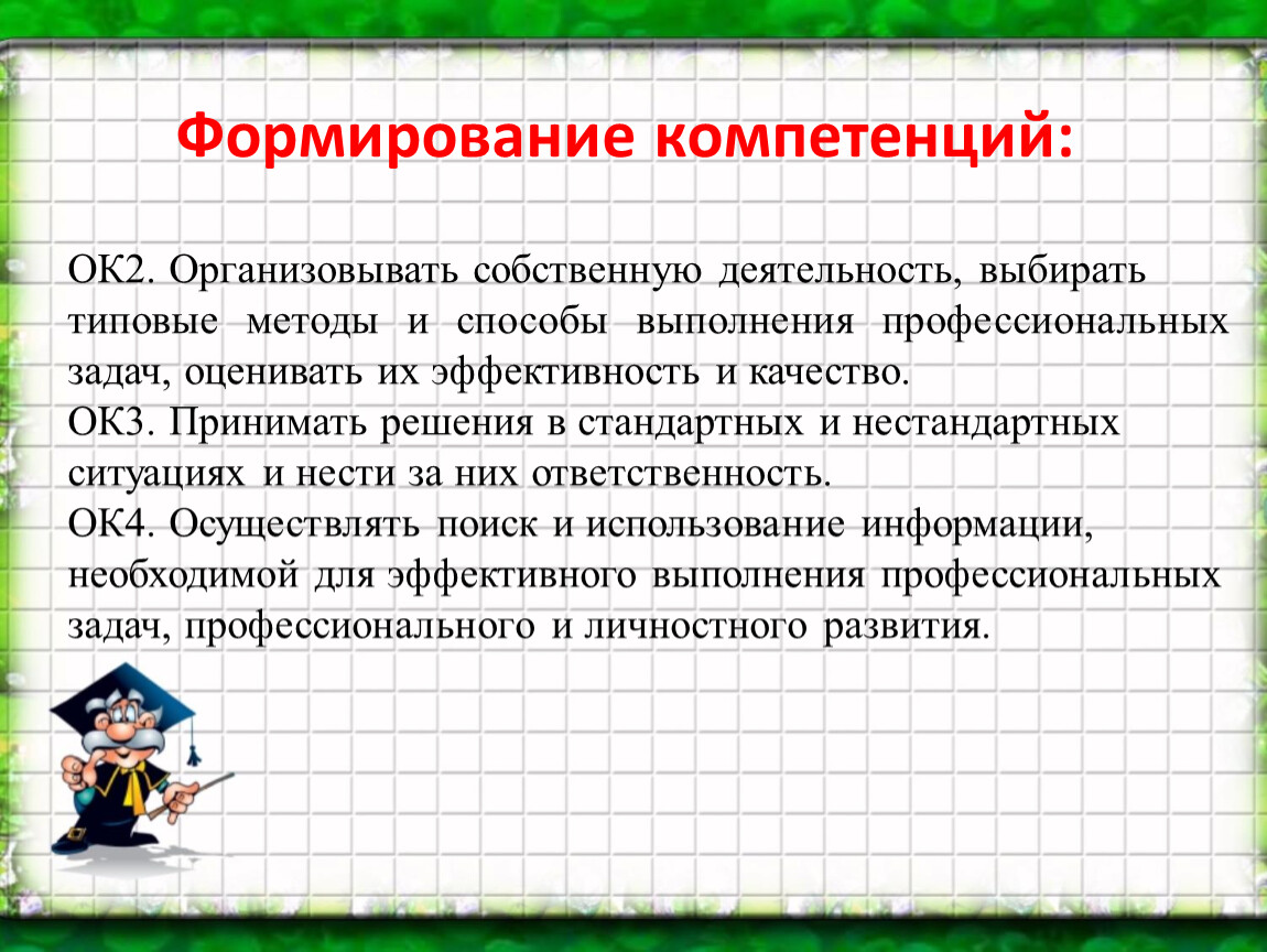 типовые методы и способы выполнения профессиональных задач, оценивать их эффективность и качество.