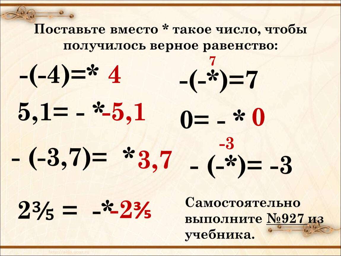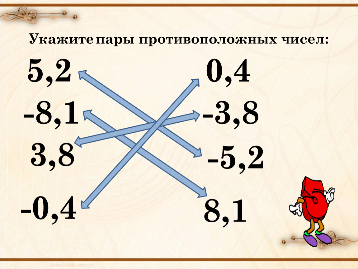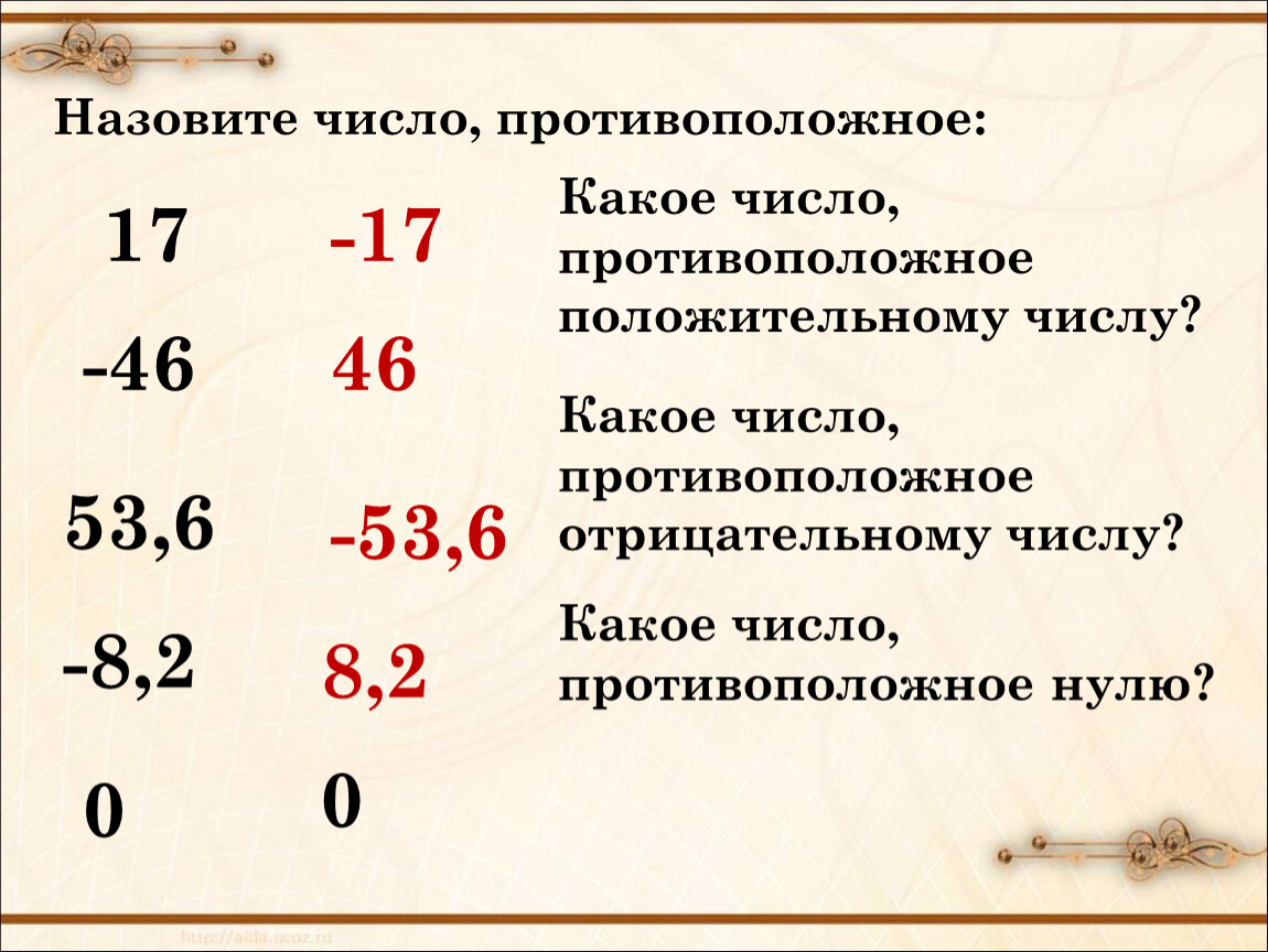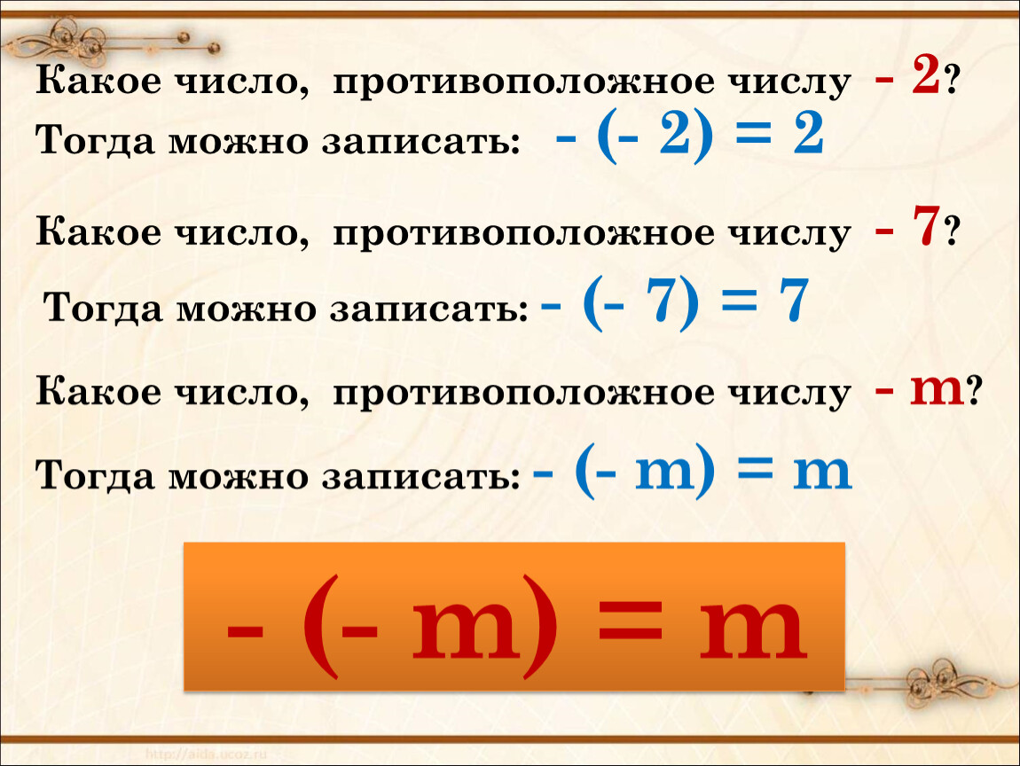 Определение: Два числа, отличающиеся друг от друга только знаками, называются противоположными.