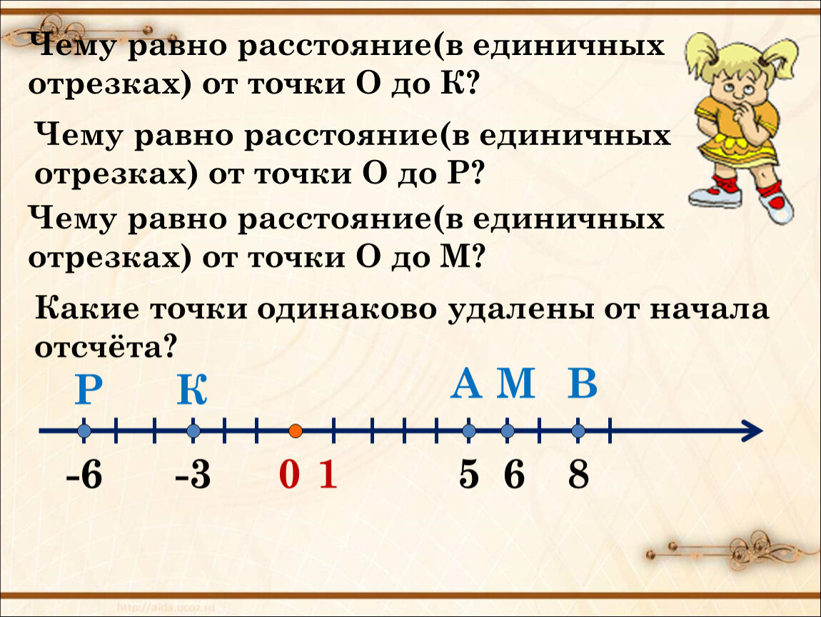 Чему равно расстояние(в единичных отрезках) от точки О до К?
