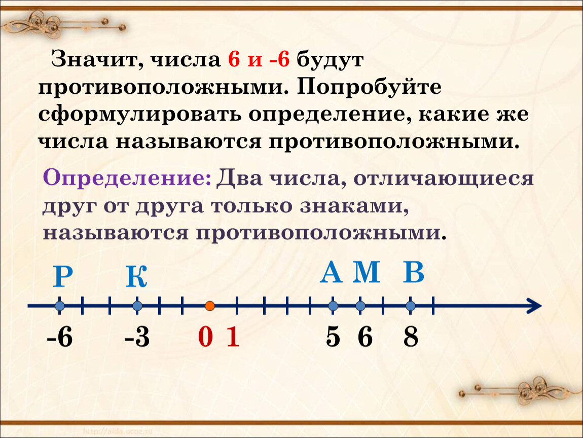 Значит, числа 6 и -6 будут противоположными. Попробуйте сформулировать определение, какие же числа называются противоположными.