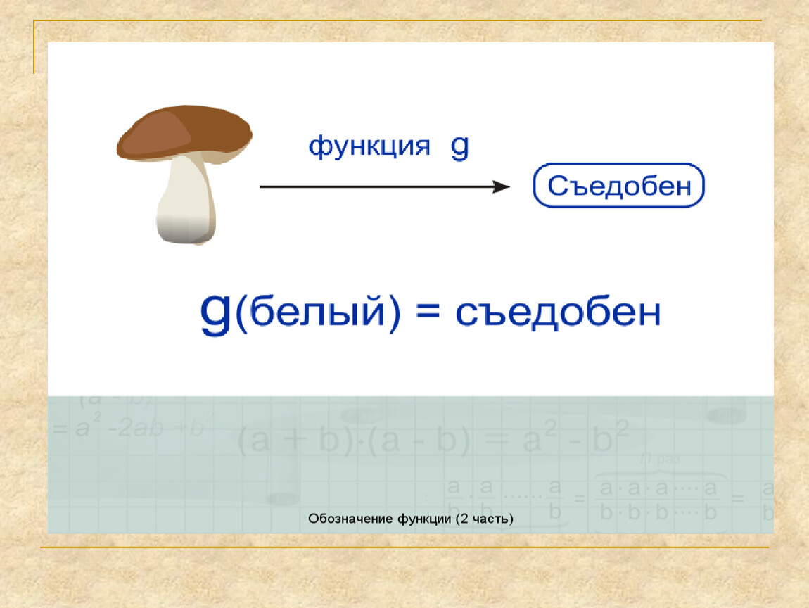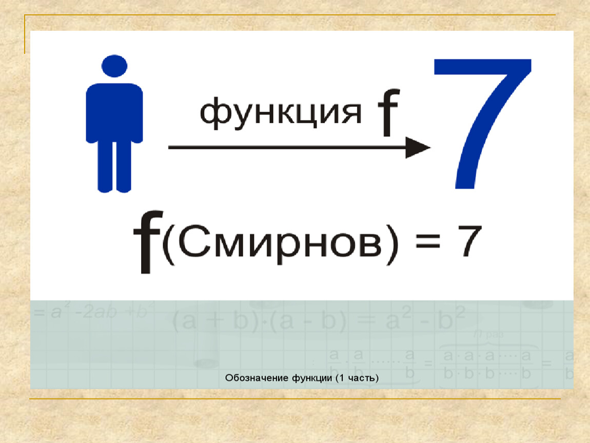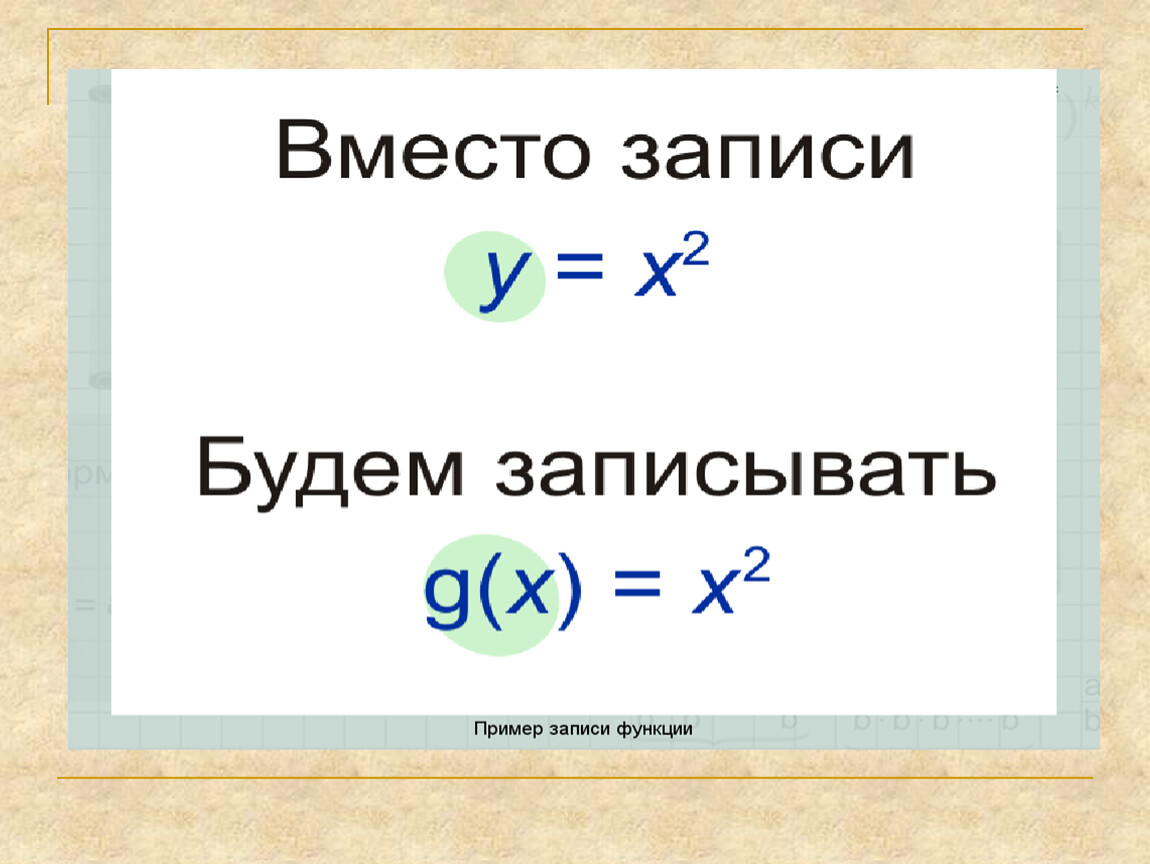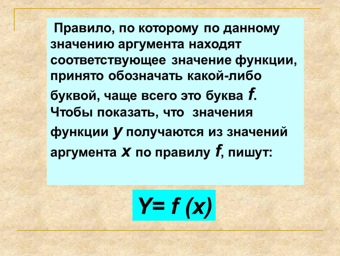 Правило, по которому по данному значению аргумента находят соответствующее значение функции, принято обозначать какой-либо буквой, чаще всего это буква f.