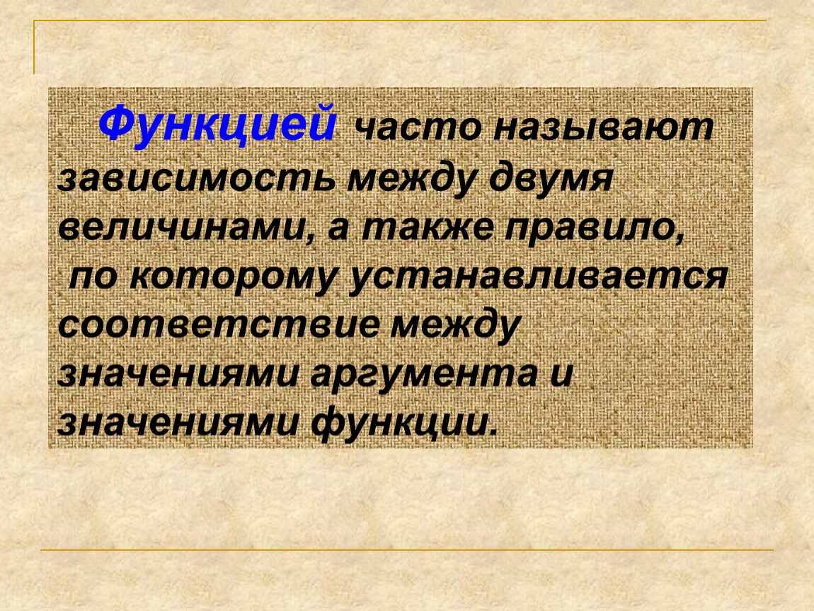 Функцией часто называют зависимость между двумя величинами, а также правило,