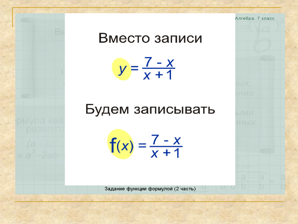 Чтобы показать, что значения функции y получаются из значений аргумента x по правилу f, пишут: