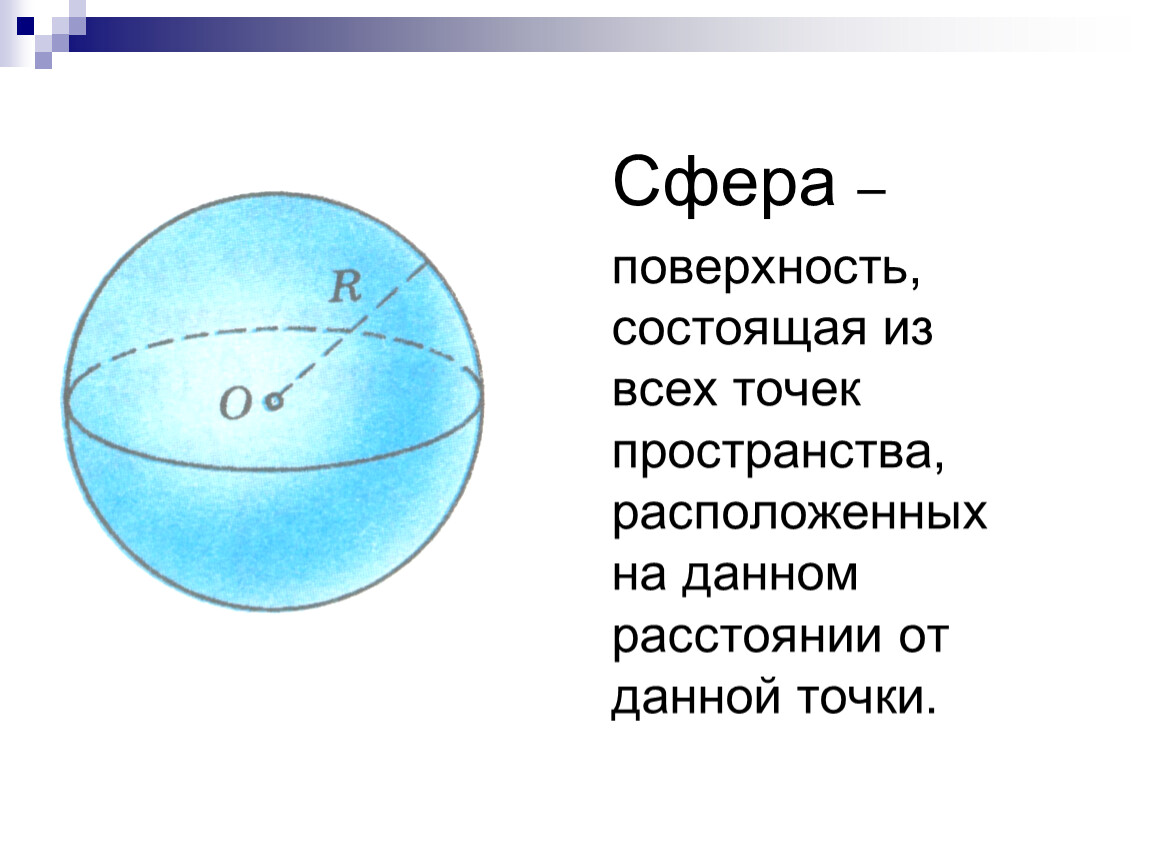 поверхность, состоящая из всех точек пространства, расположенных на данном расстоянии от данной точки.