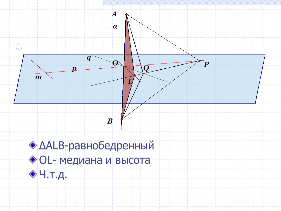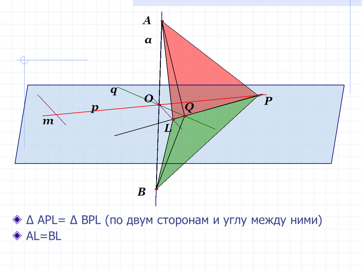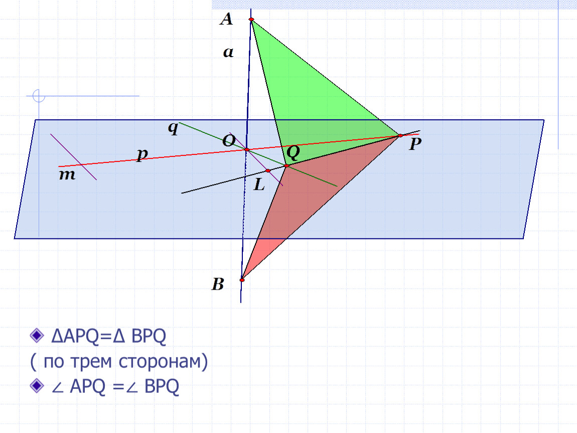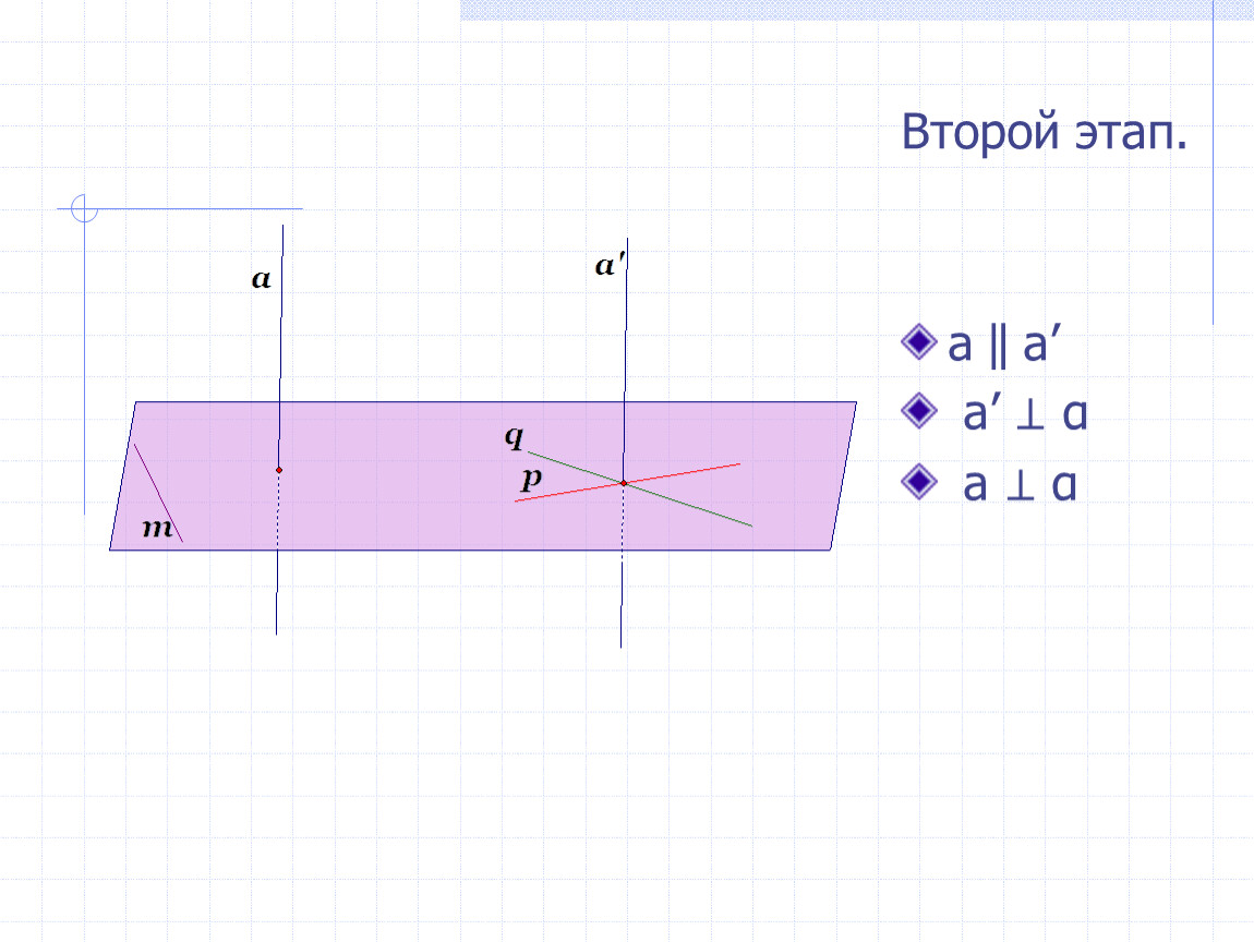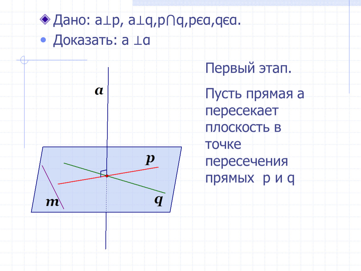 Дано: a⊥p, a⊥q,p⋂q,pєα,qєα.