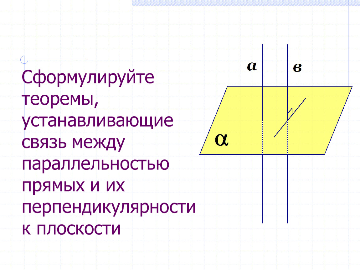 Сформулируйте теоремы, устанавливающие связь между параллельностью прямых и их перпендикулярности к плоскости