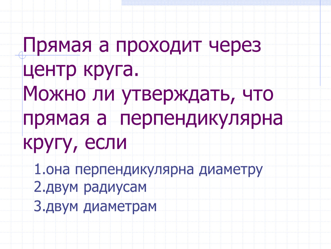 Прямая а проходит через центр круга.Можно ли утверждать, что прямая а перпендикулярна кругу, если