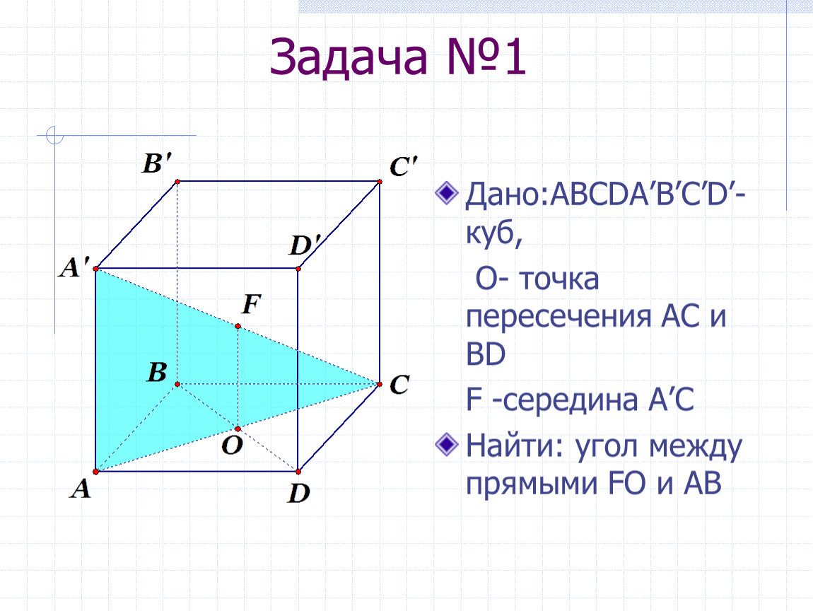 Найти: угол между прямыми FO и АВ