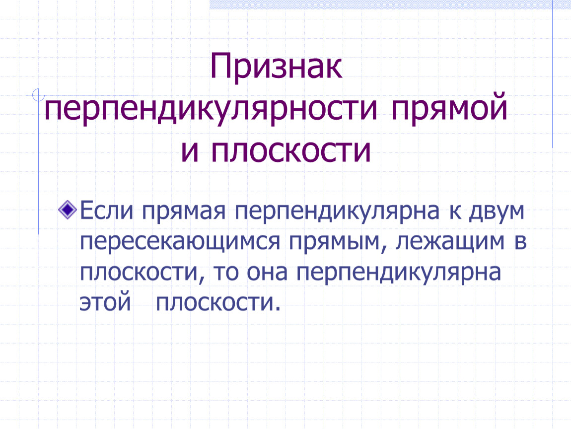 Признак перпендикулярности прямой и плоскости