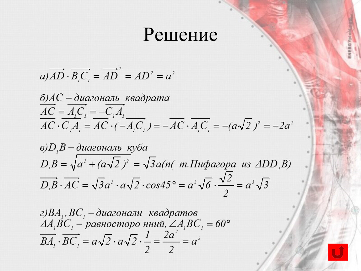 равен сумме векторов, лежащих на трех его ребрах, исходящих из одной вершины.