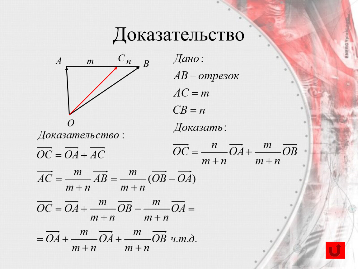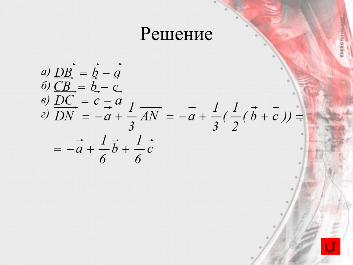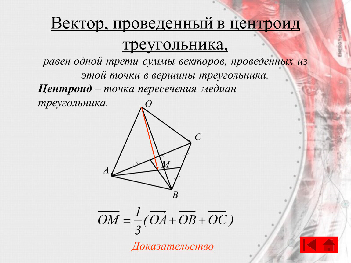 равен одной трети суммы векторов, проведенных из этой точки в вершины треугольника.