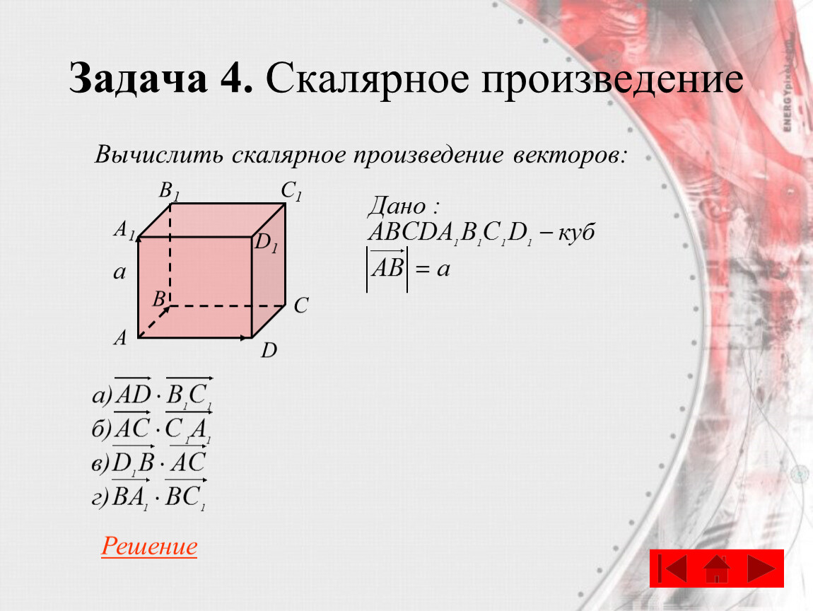 скалярный квадрат вектора (т.е. скалярное произведение вектора на себя) равен квадрату
