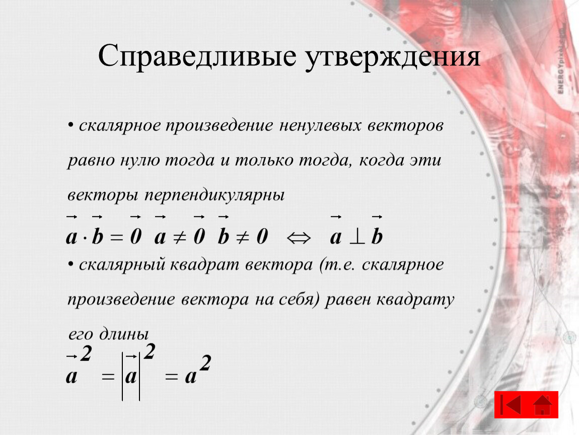 равно нулю тогда и только тогда, когда эти векторы перпендикулярны