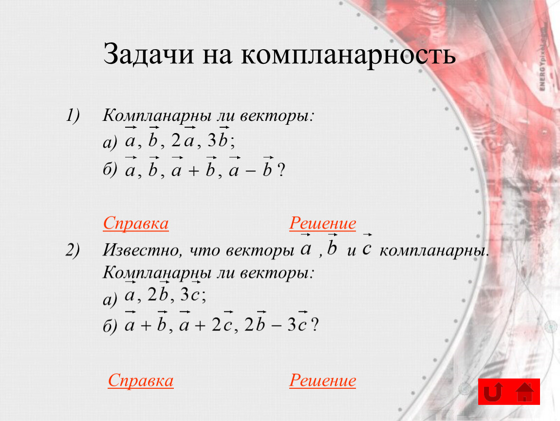 Известно, что векторы , и компланарны. Компланарны ли векторы: