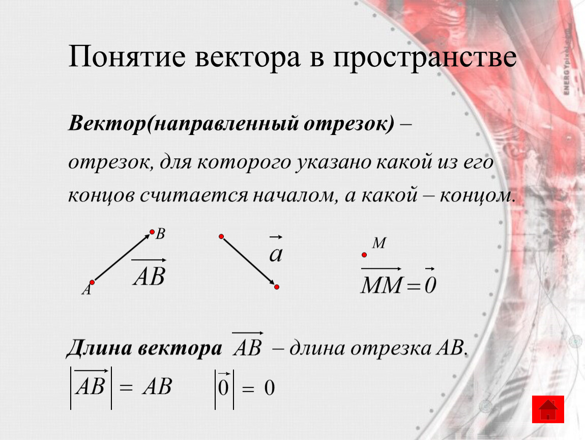отрезок, для которого указано какой из его концов считается началом, а какой – концом.
