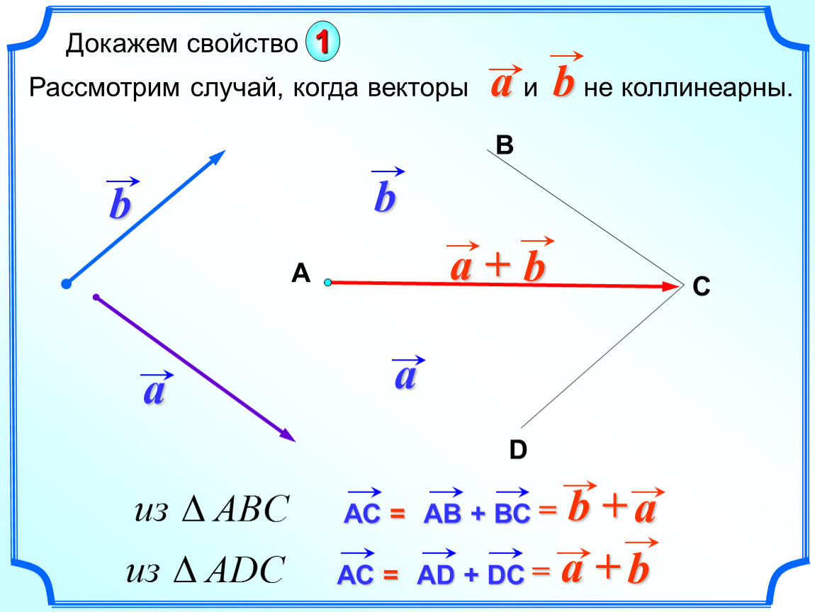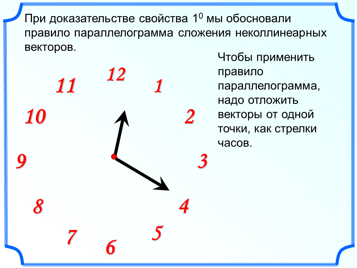 При доказательстве свойства 10 мы обосновали правило параллелограмма сложения неколлинеарных векторов.