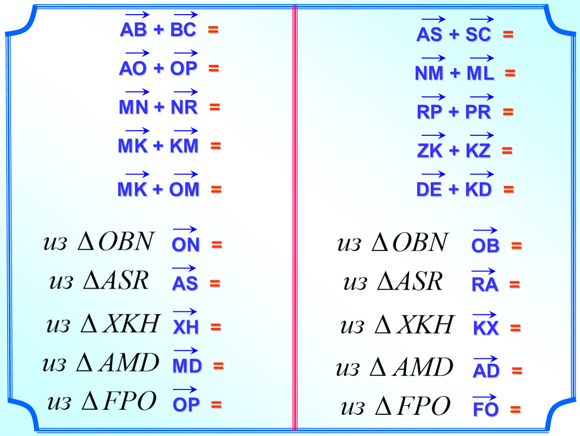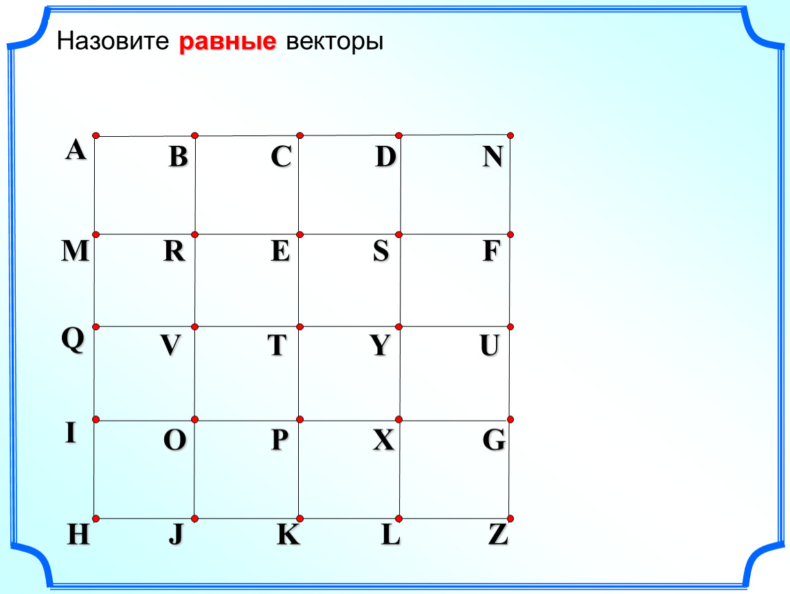 Назовите равные векторы