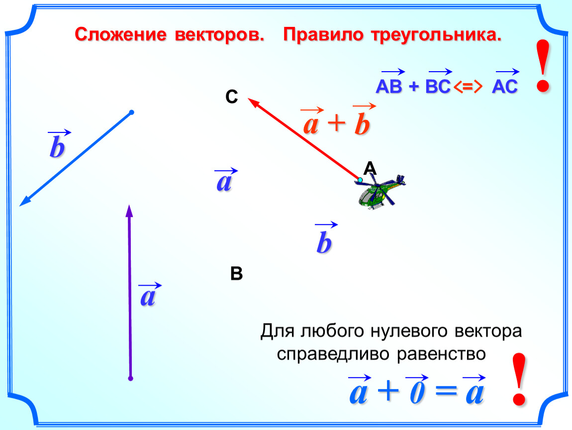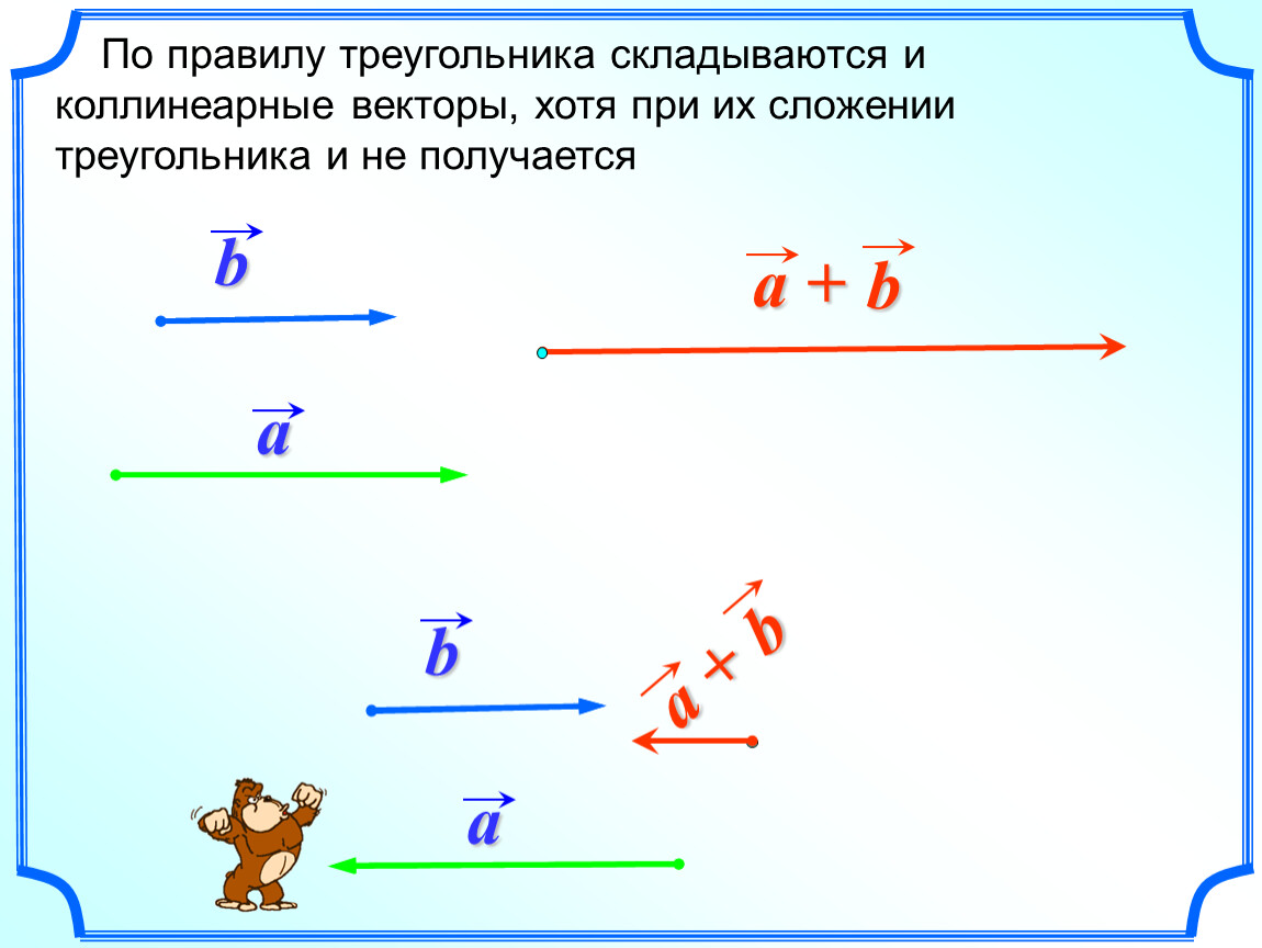 По правилу треугольника складываются и коллинеарные векторы, хотя при их сложении треугольника и не получается
