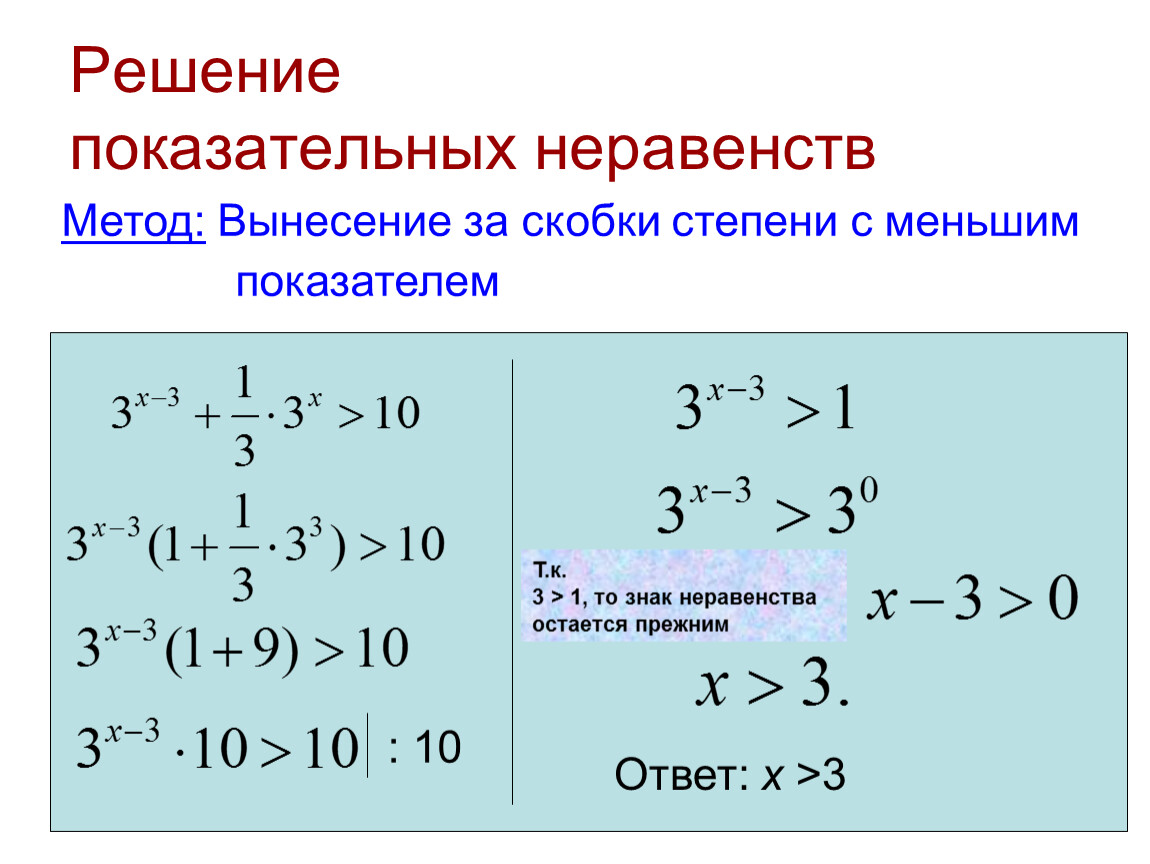 Неравенства, решаемые вынесением за скобки степени с меньшим показателем
