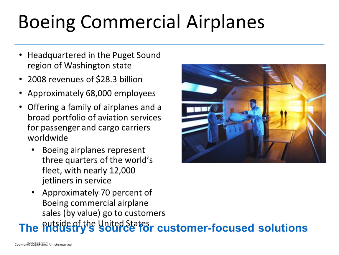 70 percent of commercial airplane revenue historically from customers outside the United States