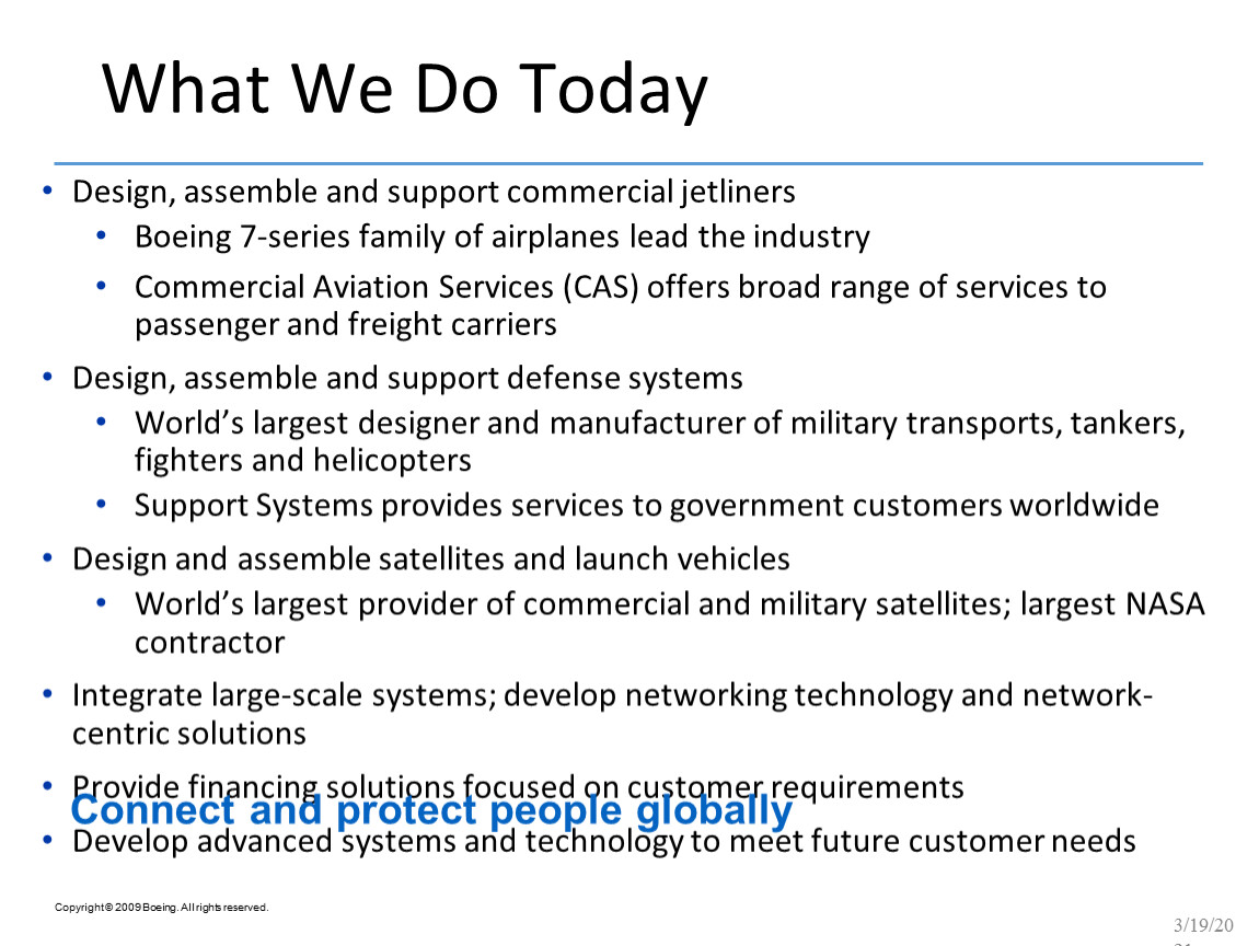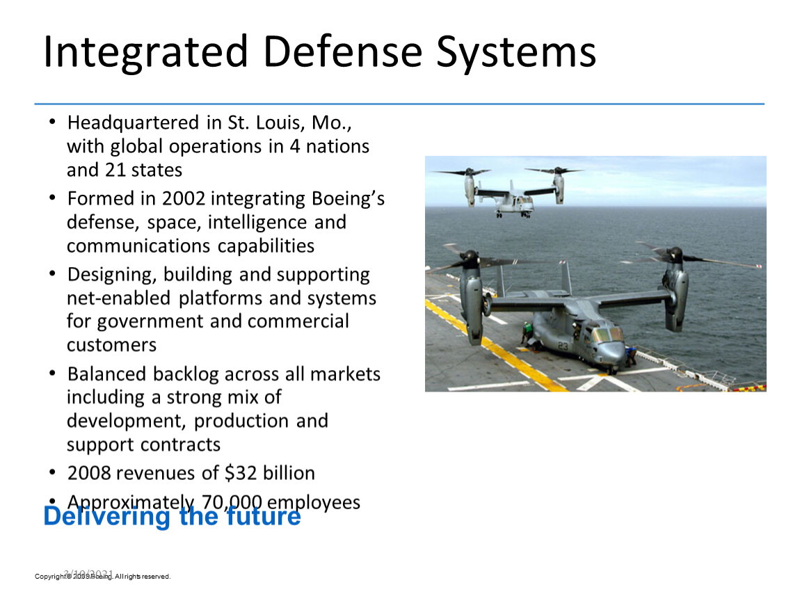 Formed in 2002 integrating Boeing’s defense, space, intelligence and communications capabilities
