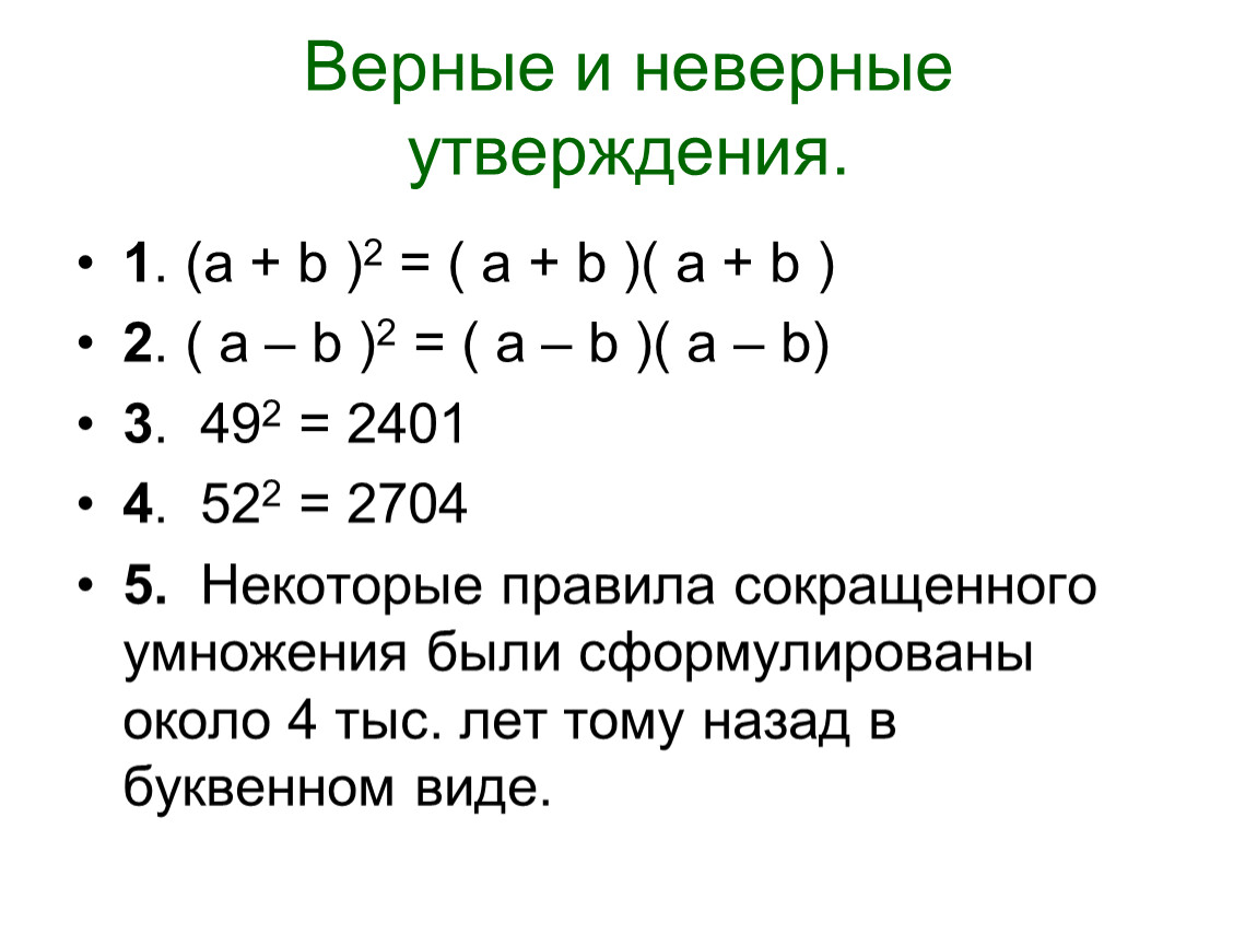 5. Некоторые правила сокращенного умножения были сформулированы около 4 тыс. лет тому назад в буквенном виде.