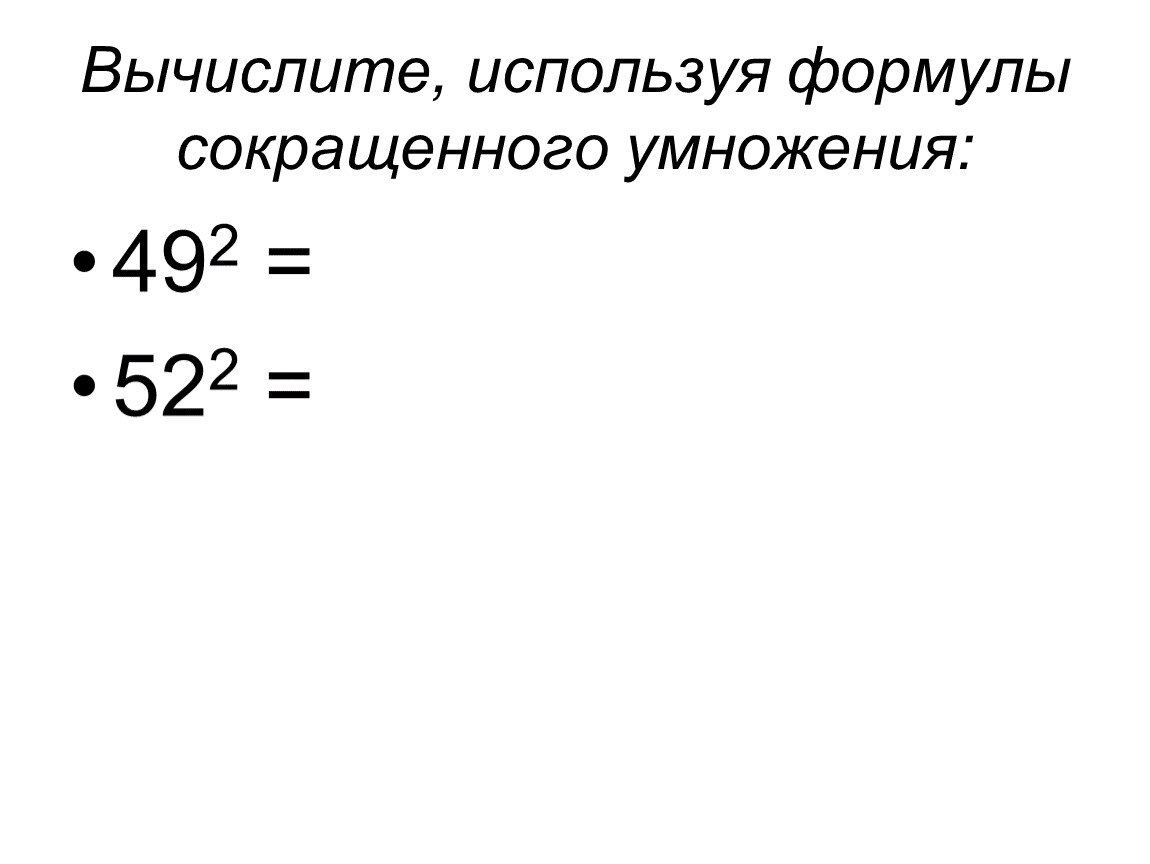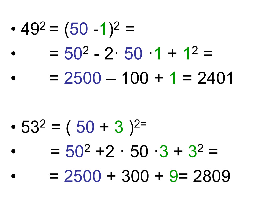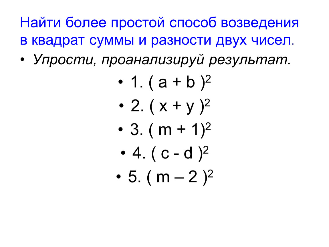Найти более простой способ возведения в квадрат суммы и разности двух чисел.