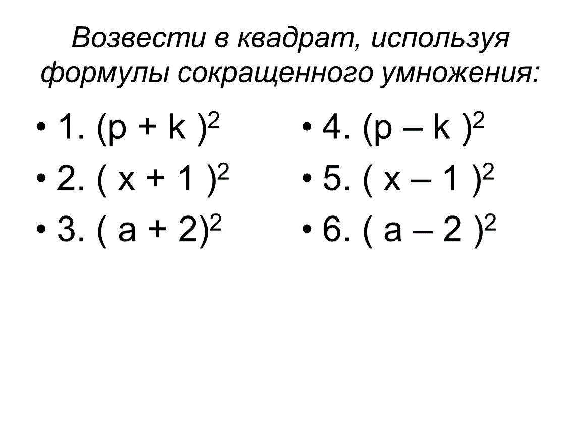 1.(n+m)2=n2+2nm+m2 1.(k+p)2=k2+2kp+p2