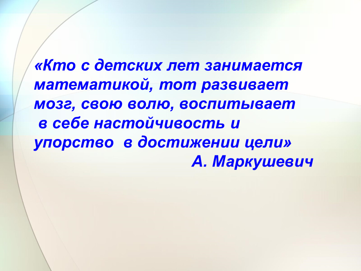 «Кто с детских лет занимается математикой, тот развивает мозг, свою волю, воспитывает