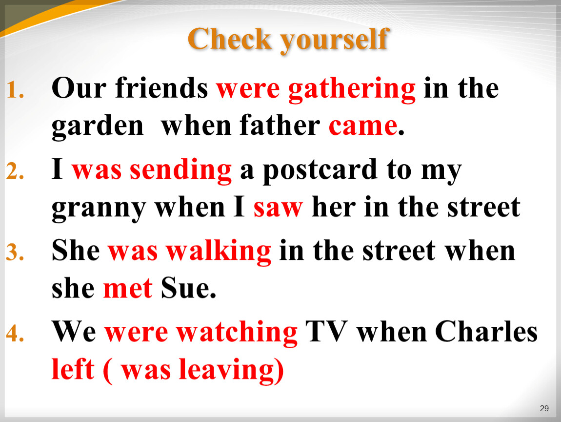 I (send) a postcard to my granny when I (see) her in the street