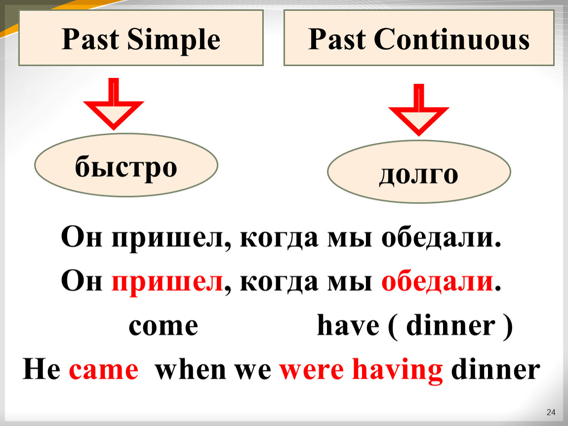 Он пришел, когда мы обедали.