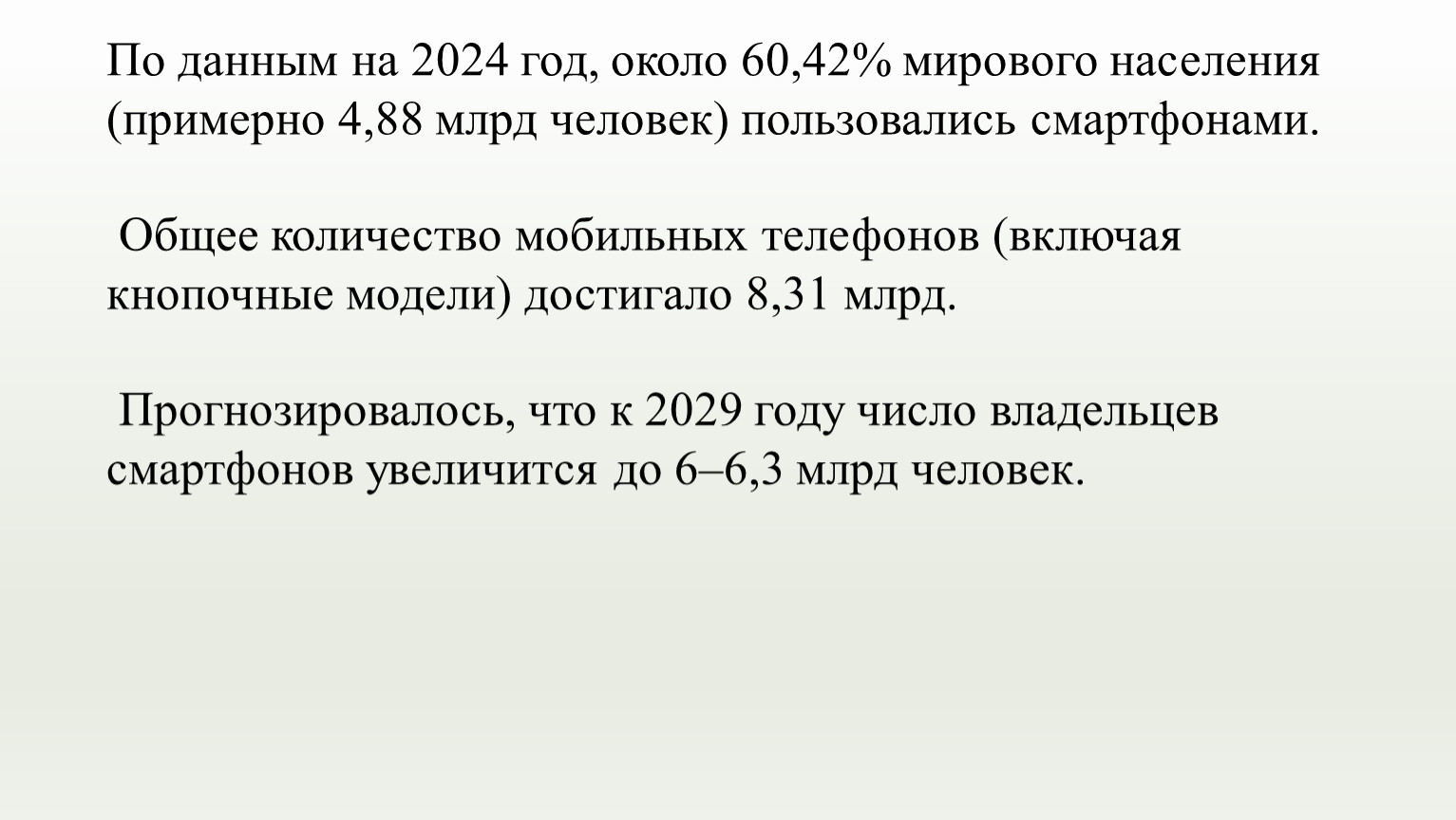 Прогнозировалось, что к 2029 году число владельцев смартфонов увеличится до 6–6,3 млрд человек.
