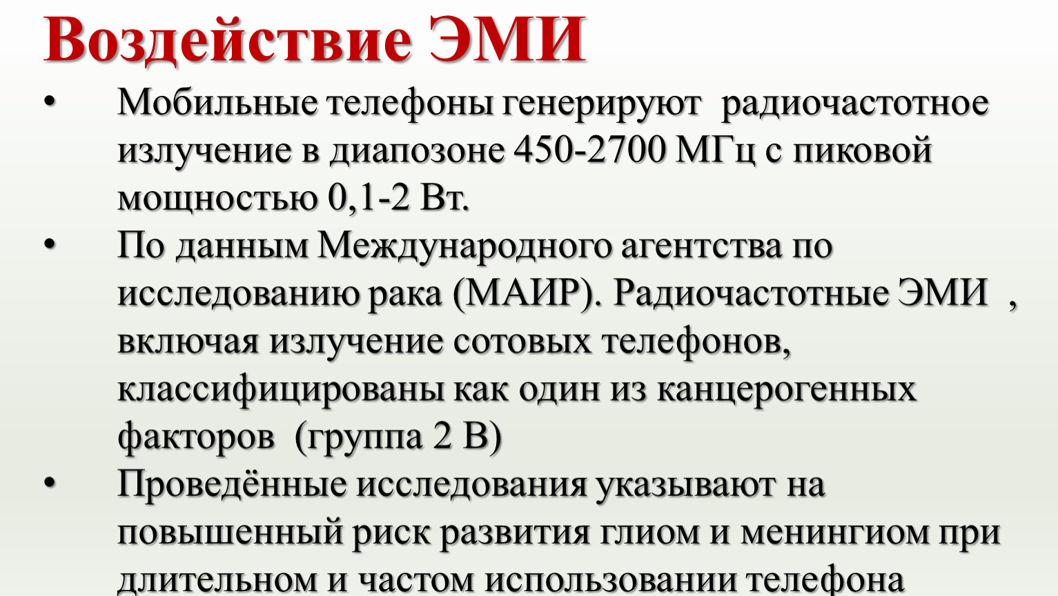 Сотовые телефоны являются источником электромагнитного излучения (ЭМИ)