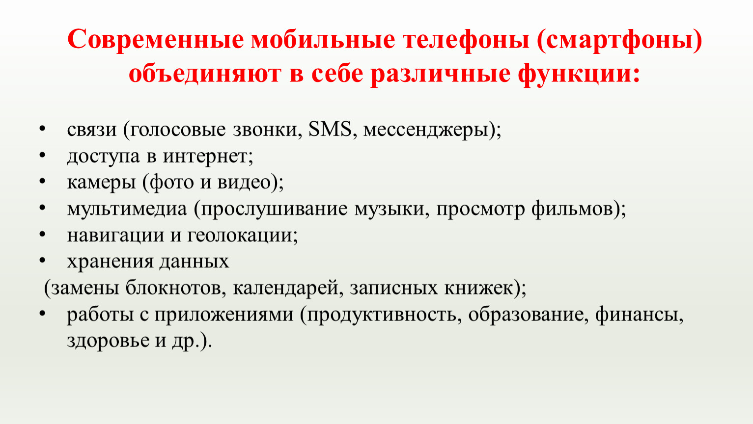 Современные мобильные телефоны (смартфоны) объединяют в себе различные функции: