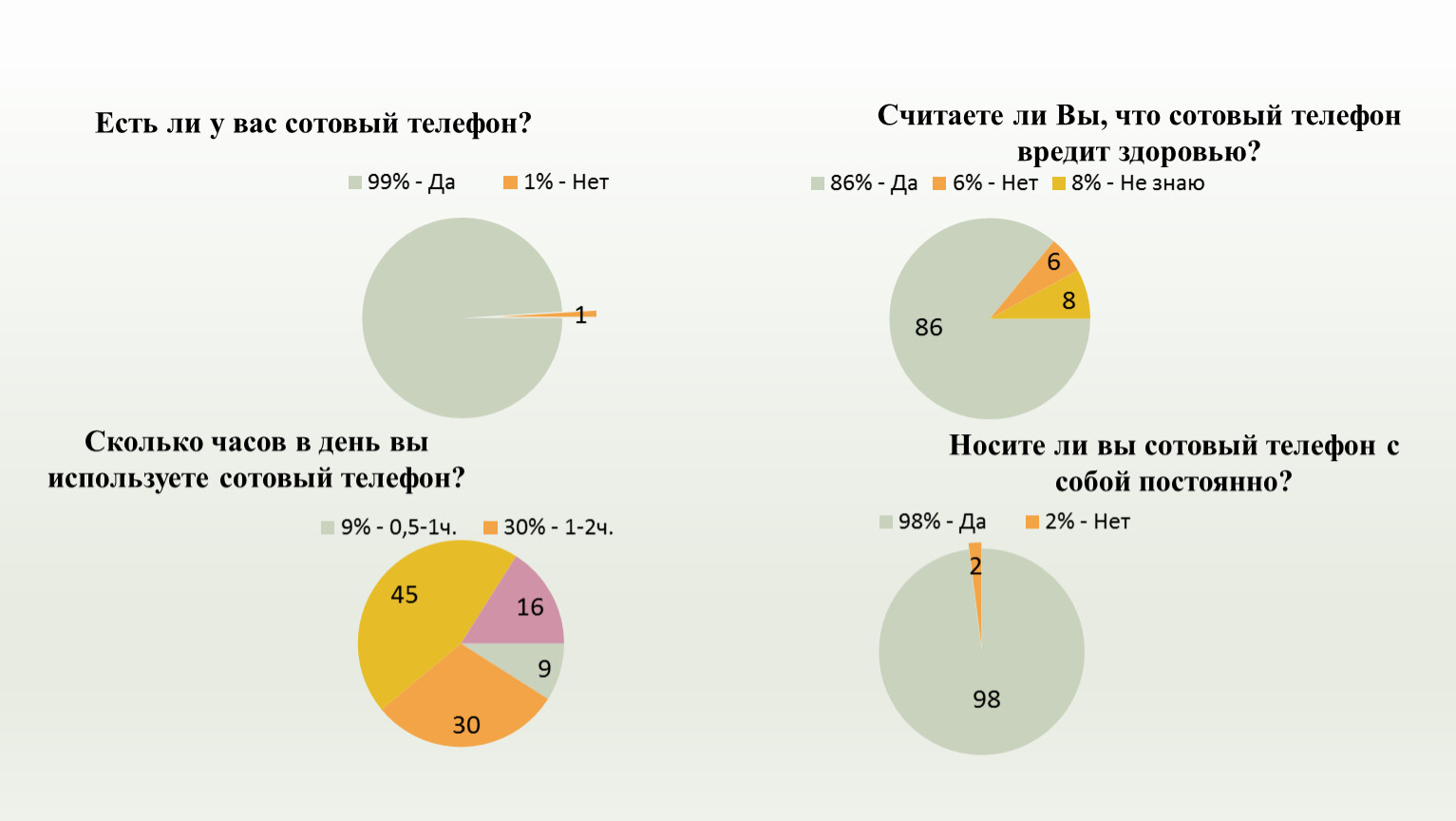 Сколько часов в день вы используете сотовый телефон?