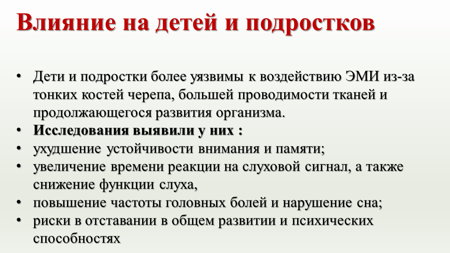 Влияние на детей и подростков